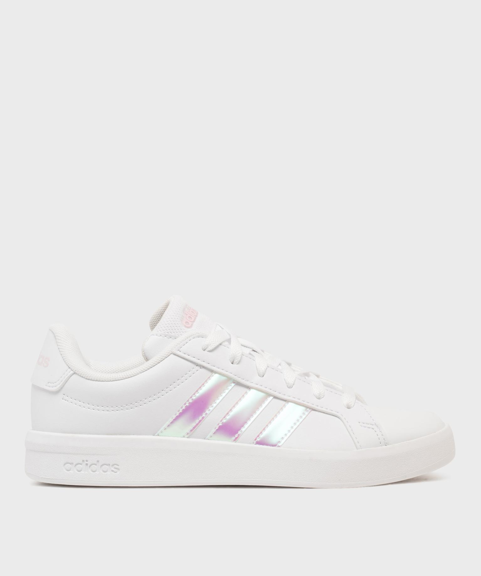 Ajoutez une touche de lumière à vos looks avec ces baskets Grand Court 3.0 Adidas rehaussées de bandes latérales scintillantes aux reflets multicolores. Ces baskets femme arborent des logos aux couleurs tendres sur un patch au talon et sur la languette. Elles séduisent par leur look mais aussi par leur confort grâce à un épais rembourrage sur le col, une semelle intérieure moelleuse et une semelle extérieure amortissante. Des sneakers à porter avec une tenue de sport comme avec une tenue citadine. Fermeture lacets plats 6 oeillets.