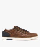 Baskets homme casual à zip latéral et lacets cirés marron vif