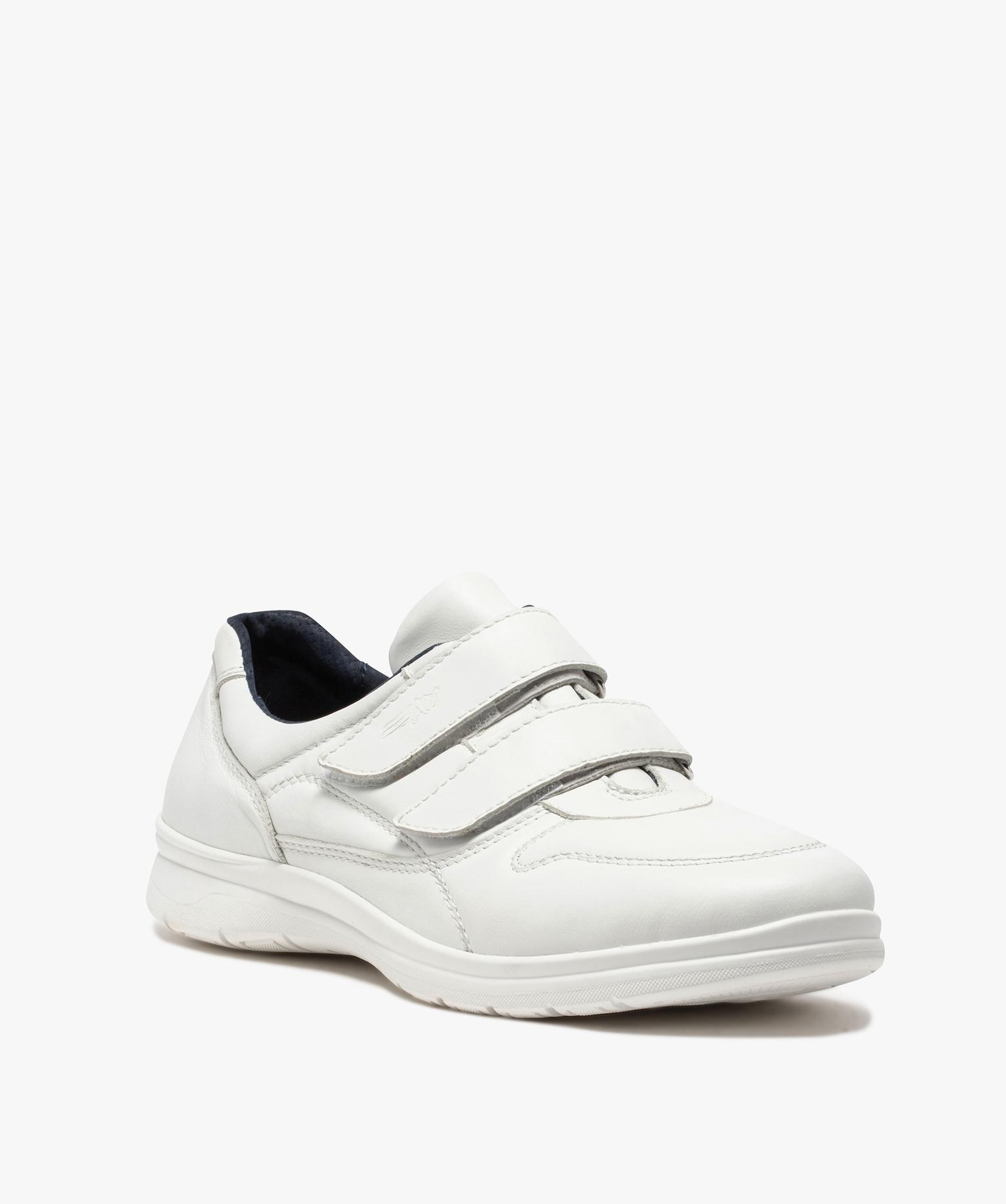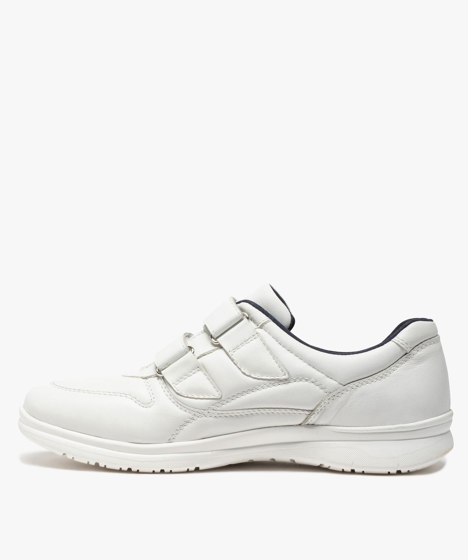 Baskets homme confort unies en cuir fermeture scratch blanc chine