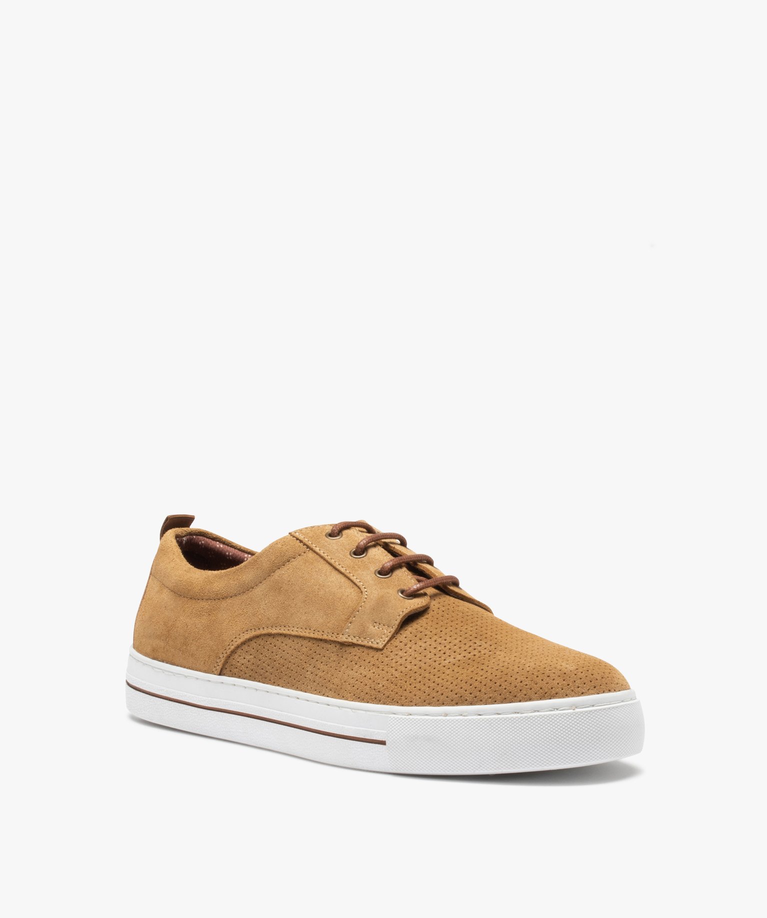 Ces baskets pour homme s’inscrivent parfaitement dans le savoir-faire chausseur de la marque Tanéo. Dessus cuir, première de propreté en cuir sont au rendez-vous pour un maximum de confort. L’élégance n'est pas en reste : la tige unie, inspirée des chaussures de tennis vintage, est en cuir retourné marqué de petites perforations. Ce sont des baskets faciles à assortir, qui seront parfaites avec vos jeans et vos pantalons chino. Fermeture lacets plats 4 œillets. Semelle contrastante avec liseré coloré assorti aux lacets.