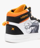 Ces baskets montantes s'adressent aux hommes aimant les tennis fun et colorées. Les fans de Naruto les trouveront irrésistibles ! Perforées à l'avant, imprimées sur le côté et équipées d'une semelle blanche épaisse, elles suivent la tendance sportswear avec goût. Un modèle qui se porte avec vos jeans ou sweatpants. Fermeture à zip intérieur et à lacets 6 oeillets.