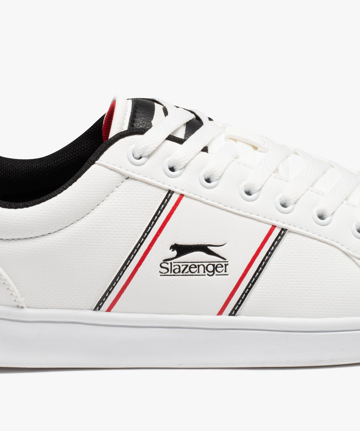 Vous allez adorer ces baskets pour homme, au style rétro et élégant à la fois. Ces tennis pour homme s'équipent d'une semelle blanche semi-épaisse et d'une tige unie avec un aspect joliment grainé. Sur le côté du pied, des bandes colorées entourent le logo de la marque Slazenger. Vous pouvez les porter avec un jean et chemise blanche ou une tenue plus casual. Fermeture à lacets 7 oeillets métalliques.