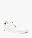 Cultivez votre allure chic et sportive avec ces chaussures de tennis pour homme ! Des baskets de la marque Ellesse qui réinterprètent avec talent un modèle parmi les plus classiques du vestiaire sportif. La tige est basse, unie, avec laçage sur la longueur. On aime les touches contrastantes : un empiècement sur le haut du contrefort, un œillet peint et le logo imprimé sur le côté, qui apportent un discret relief à ce modèle. Ce sont des baskets à porter avec vos tenues chics et décontractées : pourquoi pas les porter avec un chino et une chemise ? Fermeture lacets plats 7 œillets.