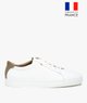 La tige basse est unie, avec laçage sur la longueur. En fonction des modèles, on trouve un empiècement contrasté sur le contrefort et une semelle en élastomère teintée caoutchouc naturel. Discret ruban bleu-blanc-rouge sur le côté du pied. Des baskets chics et décontractées à adopter au plus vite, à porter avec vos jeans et pulls préférés.
