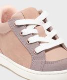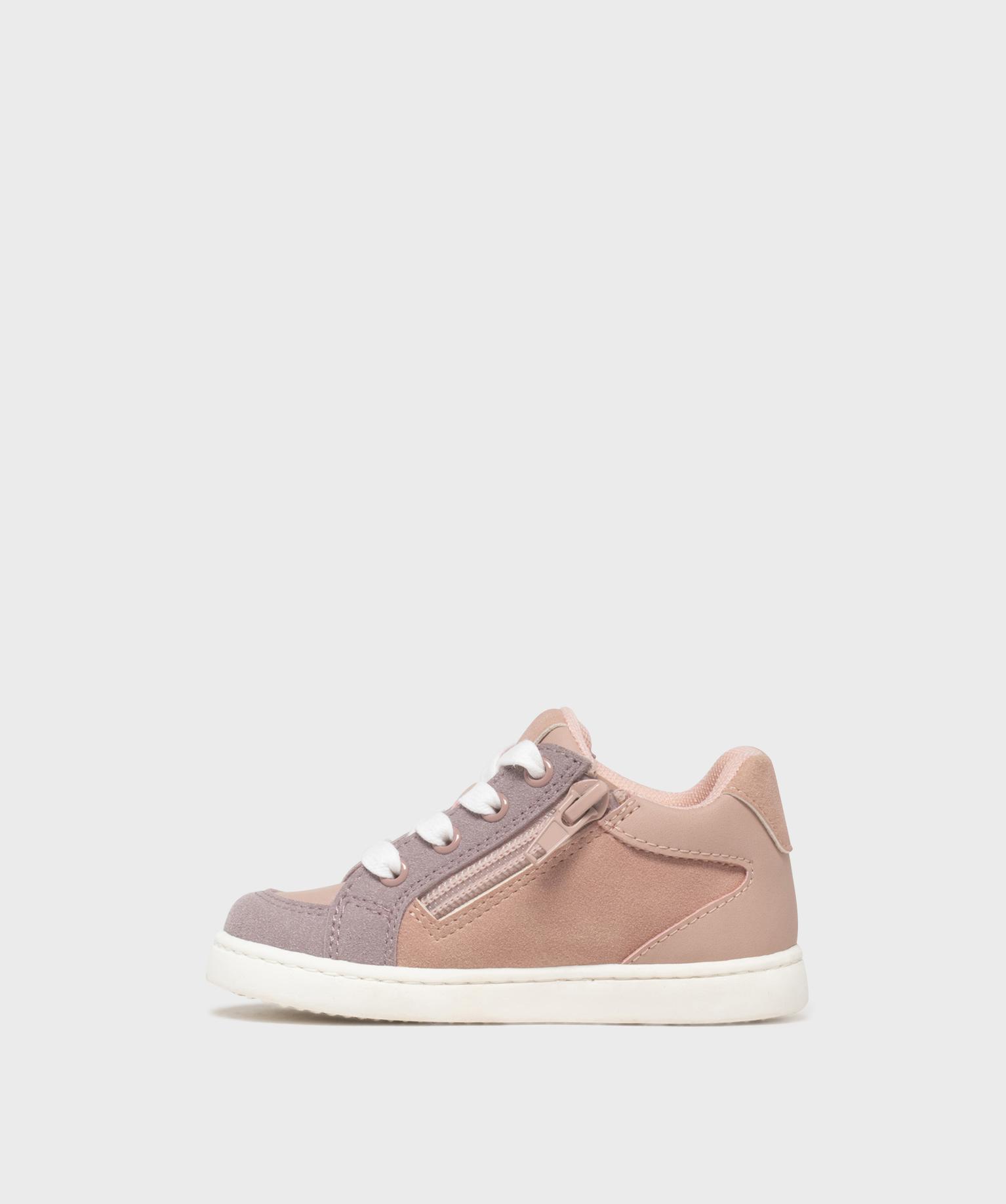 Ces petites baskets pour bébé fille à tige mid adoptent un look urbain tout en douceur avec leurs teintes pastel tendance et leur joli mix de matières. Les lacets plats apportent une touche sport stylée et permettent un bon ajustement. Mais pour plus de praticité au quotidien, un zip est placé à l’intérieur du pied. Il facilite l’enfilage et encourage l’autonomie des fillettes. Confort garanti grâce à la doublure en mesh, au col et à la languette moelleux, ainsi qu’à la semelle intérieure moussée dotée d’un indicateur de pointure.
