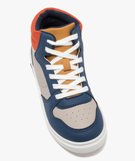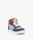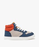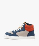 On aime ces baskets montantes qui donnent tout de suite du caractère à la tenue d'un garçon ! Leur forme haute assure un bon maintien de la cheville, un vrai plus pour les journées actives. Signées Gémo, ces chaussures se ferment à l'aide de lacets, ce qui permet de les ajuster parfaitement au pied. Le bout de la chaussure est rond et perforé, une petite touche stylée. À l'intérieur, la semelle en mousse et le col matelassé promettent de bons moments de jeu. La semelle extérieure est anti-dérapante, pour marcher et courir en toute sérénité.