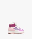 Révélez le style urbain de votre enfant avec ces baskets montantes bébé fille aux couleurs girly. Leur look streetwear tendance est complété par des lacets élastiques et une bride scratch pratique à la cheville. Conçues pour le confort, ces baskets possèdent une doublure en mesh, un col et une languette rembourrés, ainsi qu’une semelle intérieure moelleuse. Des baskets bébé à porter un legging et un tee-shirt ou un sweat oversize pour une tenue moderne et confortable.