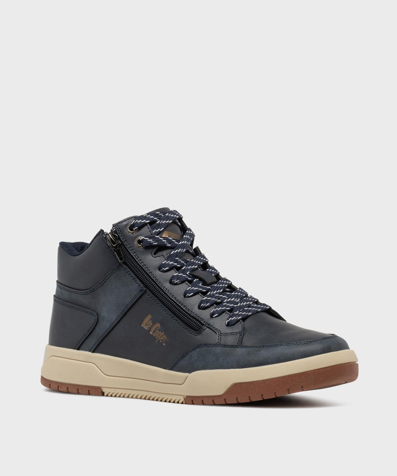 Baskets montantes avec lacets et zip homme - Lee Cooper bleu fonce