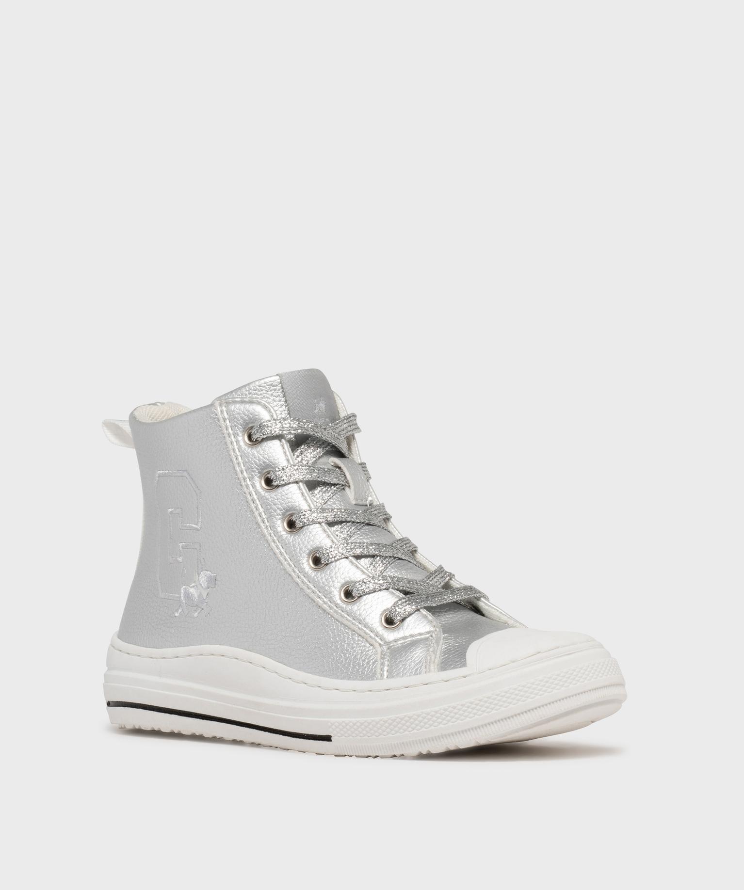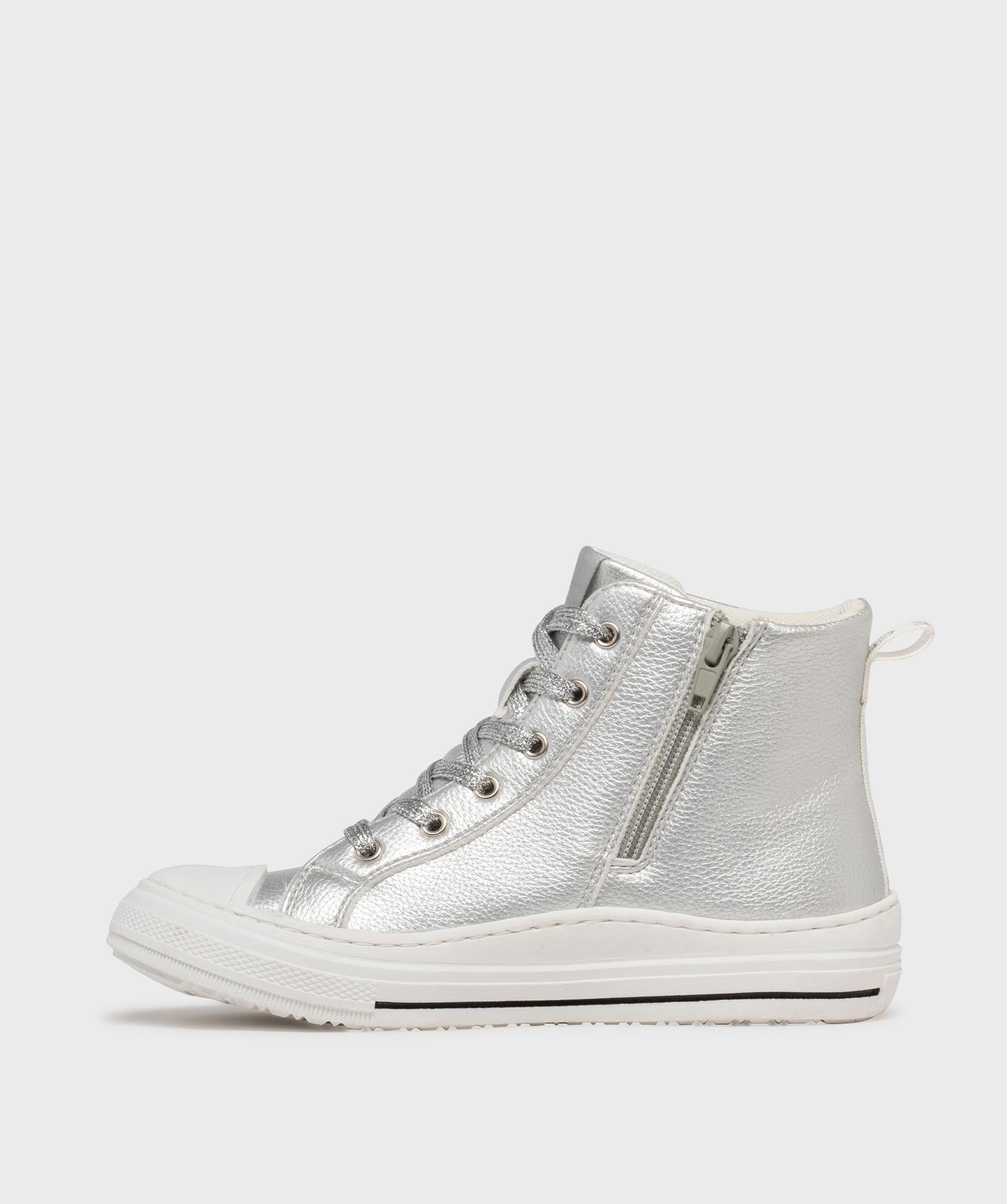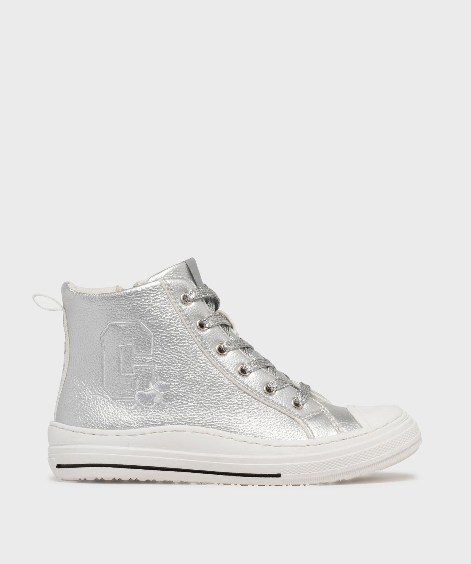 Baskets montantes en matière métallisée fille - Chipie argent