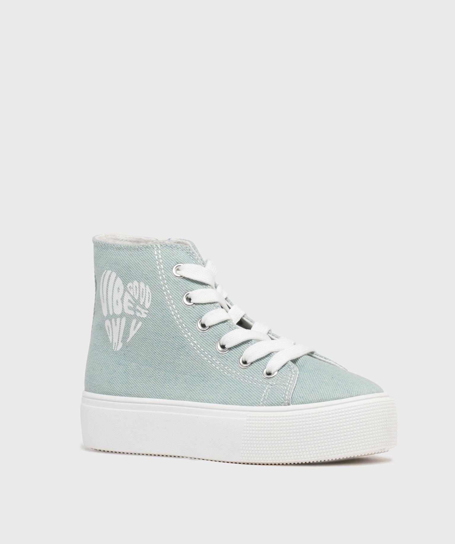 Baskets montantes en toile à semelle plateforme fille - Lovely Wings bleu clair
