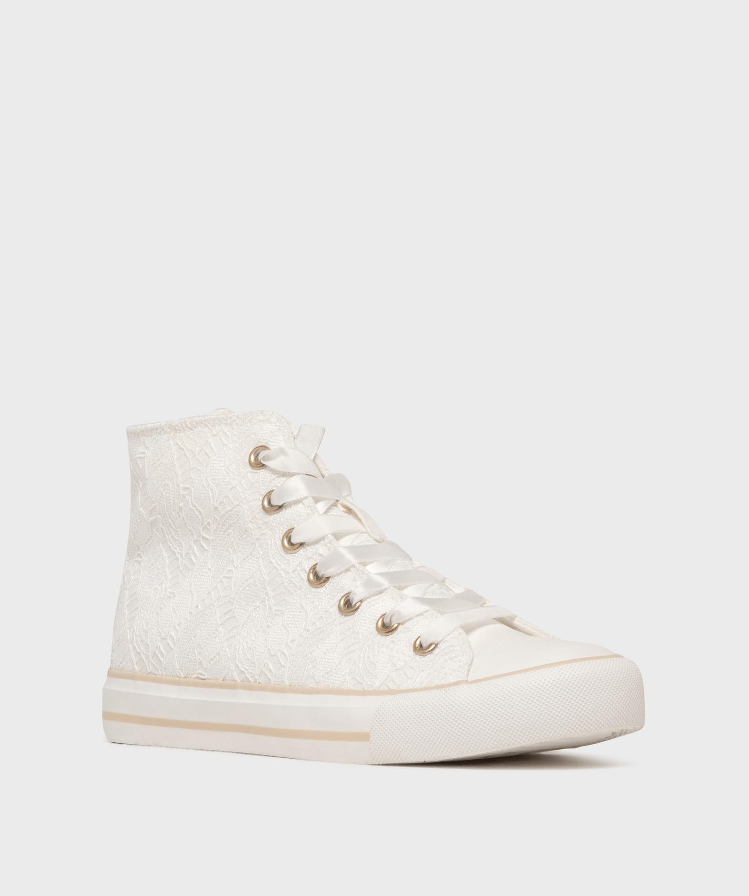 Baskets montantes en toile brodée femme - Follow Me blanc