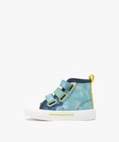 Avec leur tige en toile déperlante qui laisse glisser la pluie, ces baskets bébé garçon seront parfaite pour affronter les caprices de la météo ! Des chaussures stylées au coloris tie and dye, inspirées du vestiaire vintage des années 90, posées sur une épaisse semelle contrastante qui recouvre le bout du pied. Ces baskets bébé se ferment facilement grâce à trois brides à scratch. Des chaussures bébé qui permettent de garder les pieds au sec en toutes circonstances.