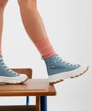 Pour toutes les baroudeuses citadines, Disney dévoile une paire de baskets montantes en toile au charme unique. Leur atout ? Une petite poche astucieuse où se cache Stitch, le célèbre extraterrestre bleu au regard malicieux. Inspirées des modèles iconiques des années 90, ces baskets femme allient style rétro et confort moderne. Leur tige en toile denim, rehaussée de surpiqûres contrastantes, s'associe à une semelle imposante dotée d’une couche d’usure crantée, parfaite pour arpenter tous les sols. Pratiques et stylées, ces baskets Stitch se ferment à l’aide de lacets plats coulissant dans des œillets métalliques.