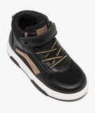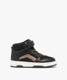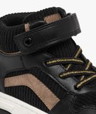 Baskets pour fille à tige montante, dotée de lacets élastiques et d'une bride scratch pour un enfilage facile et un confort optimal. Ces jolies baskets se démarquent par leur mélange de matière et de textures : velours côtelé, matière synthétique lisse mate, matière synthétique métallisée brillante. Même les lacets se font remarquer avec leur fin liseré doré scintillant. Conçues pour le confort et le style, ces baskets enfant se marient aussi bien avec un jean pour un look décontracté qu'avec une robe pour une allure streetwear et girly.