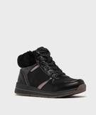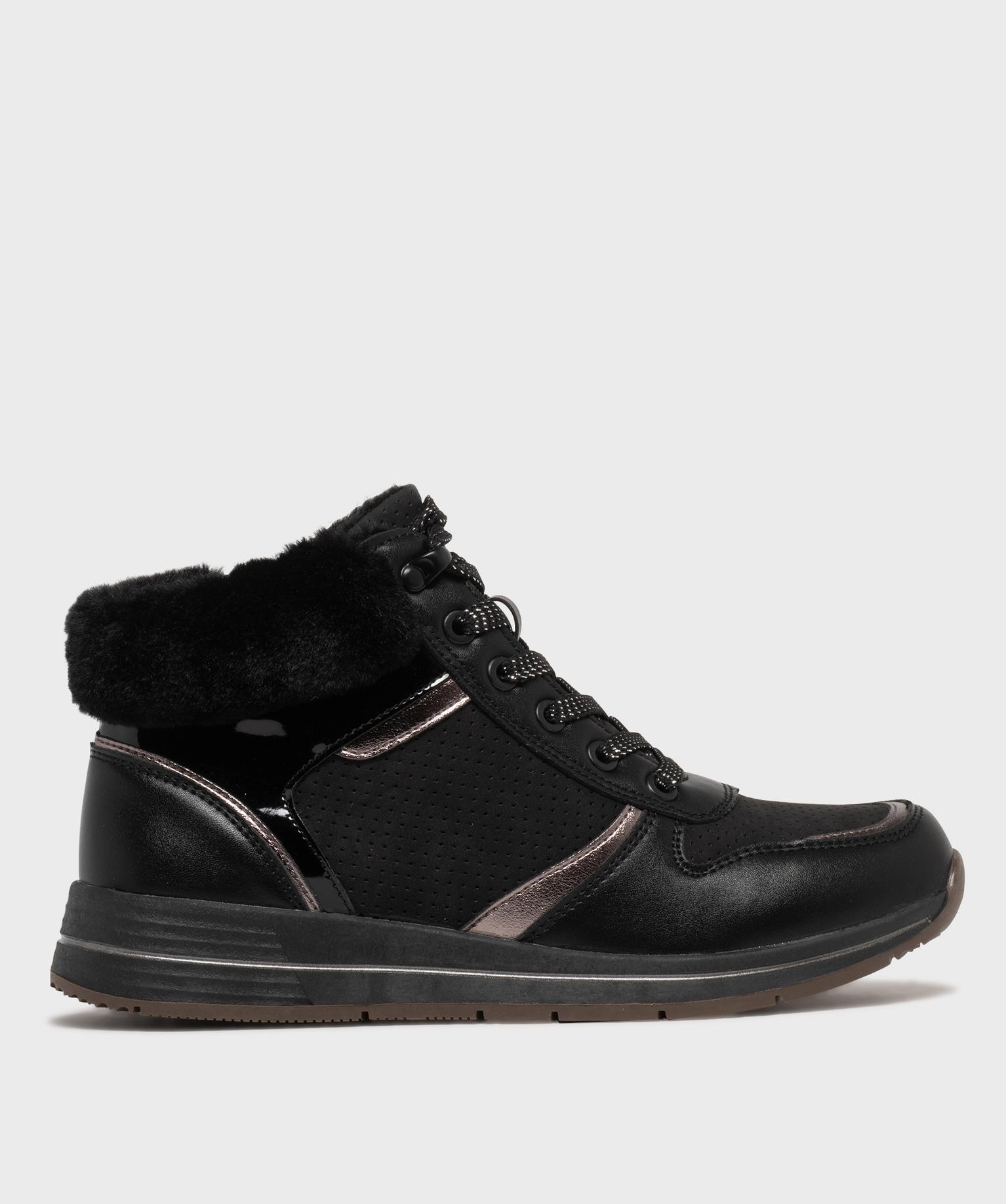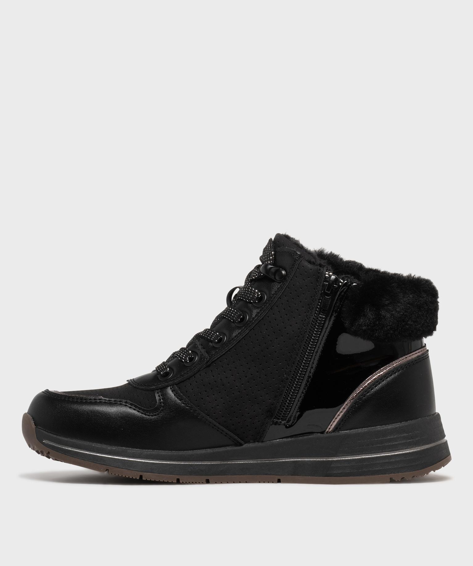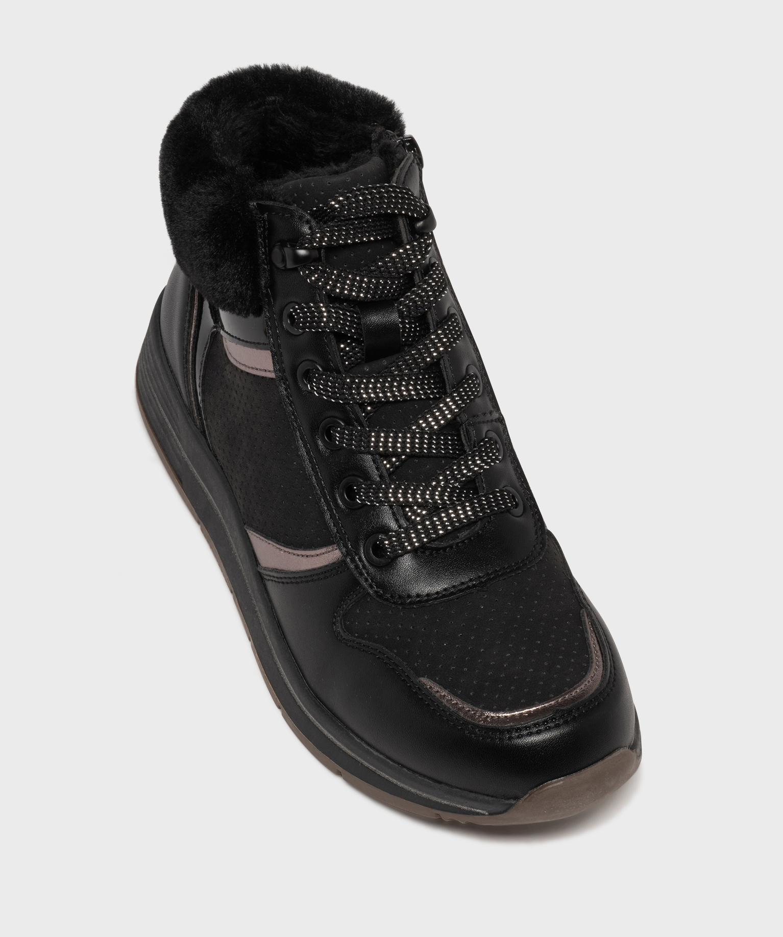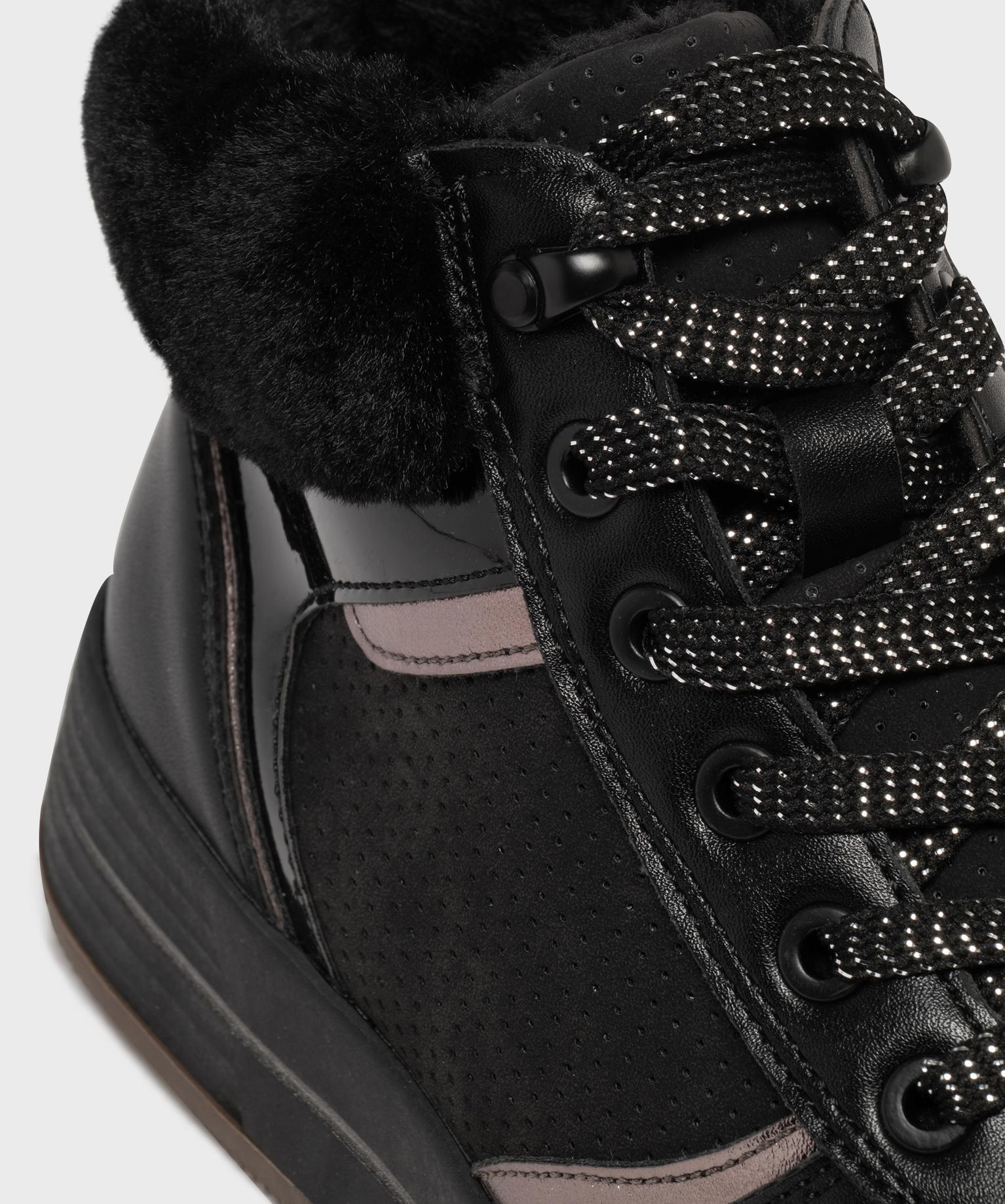 Baskets montantes fourrées à lacets et zips femme noir chine