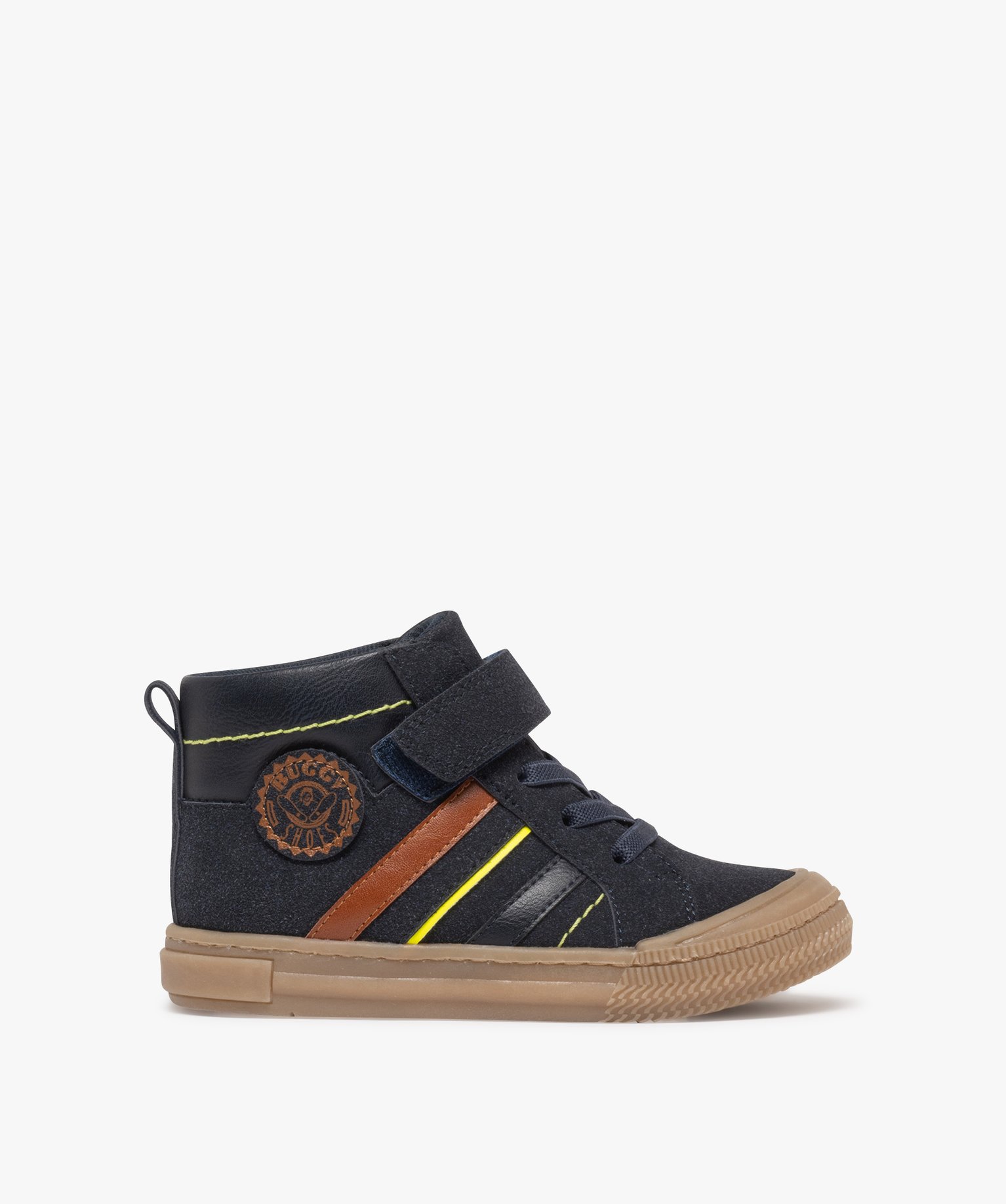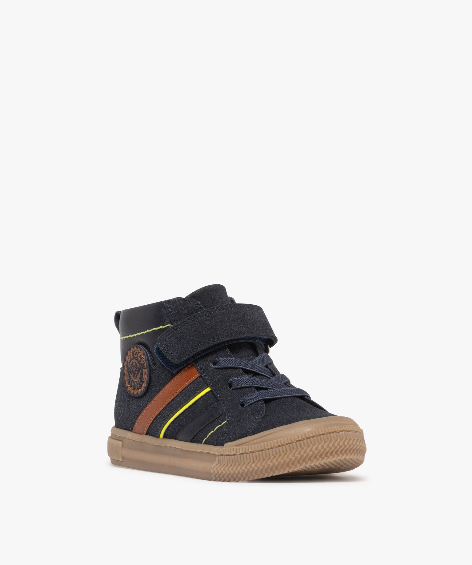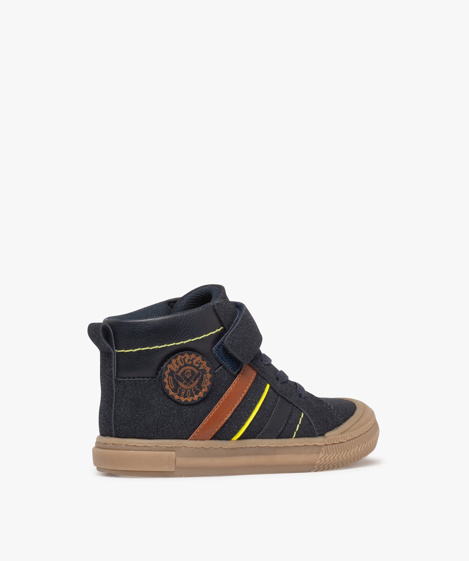 Baskets montantes ludiques à scratch garçon bleu fonce