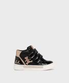 Retrouvez tout l’esprit girly de LuluCastagnette dans ces adorables baskets bébé fille. Conçues dans un mélange de matière vernie, de cuir imitation aspect grainé et de matière métallisée, elles illumineront toutes les tenues des petites princesses. Ces baskets montantes assurent un maintien tout en confort grâce à un col rembourré et se ferment facilement par deux brides à scratch. Des chaussures fidèles aux codes de la marque arborant un ourson sur le côté et une inscription brodée au talon. Elles reposent sur une semelle sportive sublimée par des paillettes.