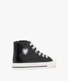 Baskets montantes vernies à lacets cœurs fille noir