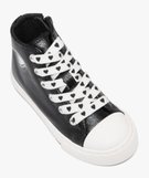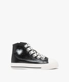 Baskets montantes vernies et grainées à lacets cœurs fille noir