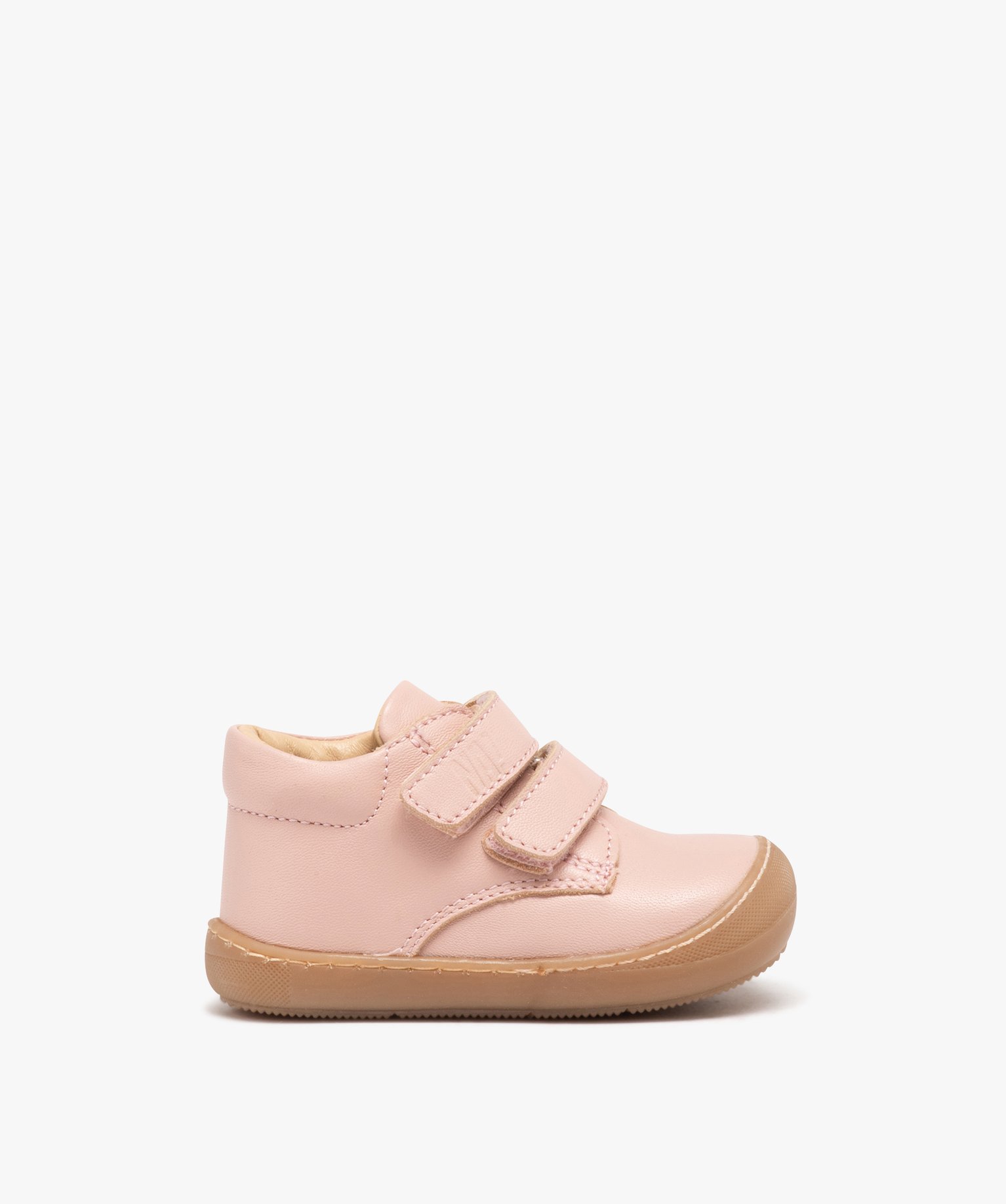 Baskets premiers pas bébé fille dessus en cuir uni - NA! rose