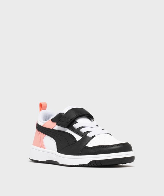 La Rebound V6 Lo Puma va faire des ravages dans les cours de récréation ! Une basket fille inspirée de l’univers du basketball, qui accompagnera les enfants lors de la pratique de leur sport préféré, comme dans leurs looks décontractés. Sa tige perforée sur le dessus, est rehaussée d’empiècements contrastants mixant différents coloris. Dotée de lacets élastiques et d’une bride à scratch, elle s’enfile facilement. Cette basket à scratch repose sur une semelle amortissante avec couche d’usure légèrement crantée.