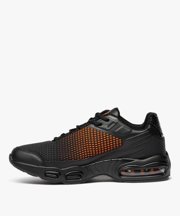 Baskets homme au style affirmé. Idéales pour les personnes en quête de confort et d'un look streetwear à la pointe. Les fans de running apprécieront la semelle à bulle d'air et la tige en mesh renforcée. Le col, la languette et la semelle intérieure moussés offrent un véritable cocon à votre pied. Ces baskets basses se portent aussi bien avec un jogging qu'avec un jean large pour une allure tendance. Fermeture à lacet. Côtés moelleux. Talon et bout renforcés. Différents empiècements texturés.