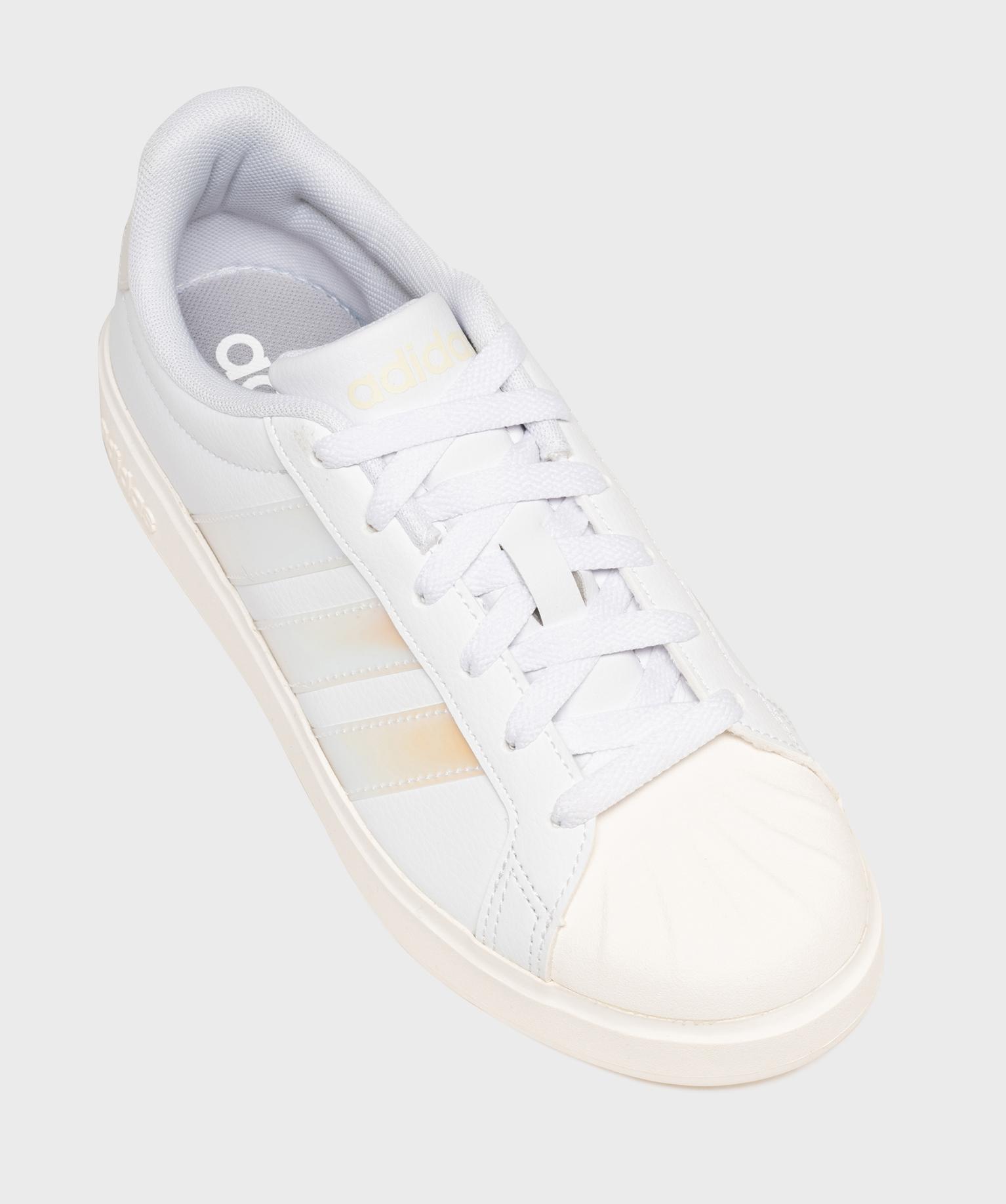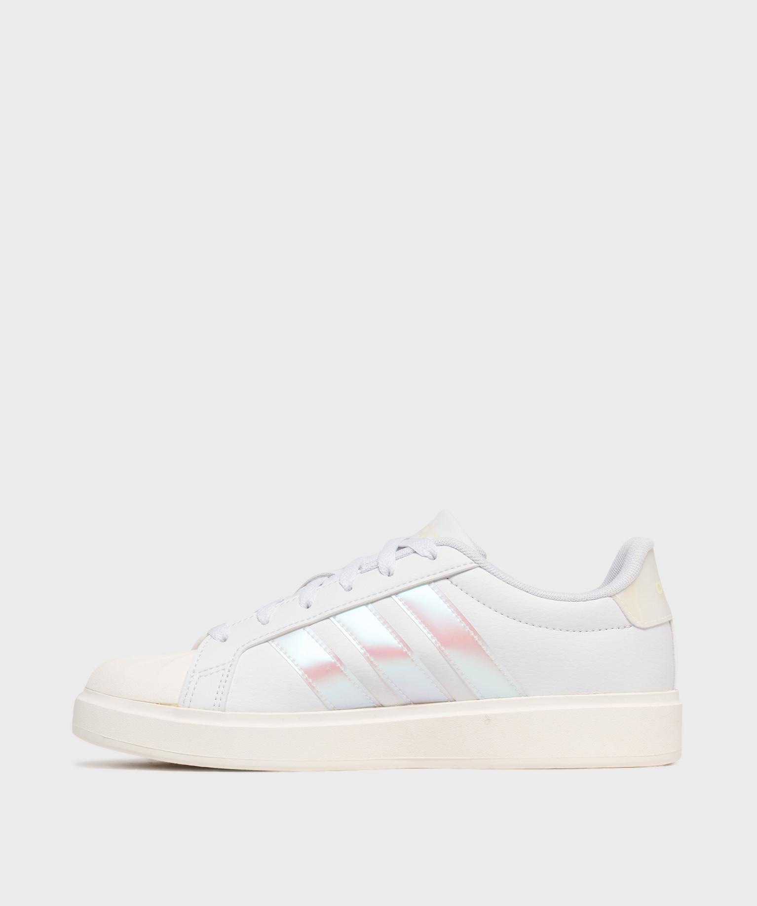 Les baskets Streettalk Adidas se distinguent par leur bout « shell-toe » original et leur subtile association de couleurs et de matières. Leur tige mêlant cuir grainé imitation et matière synthétique mate est illuminée par des bandes latérales irisées au reflets multicolores, et un patch au talon assorti. Pensées pour accompagner les tenues quotidiennes avec décontraction, ces baskets femme allient style et confort. La semelle amortissante assure un bon maintien, tandis que la semelle intérieure moelleuse et amovible offre un confort durable tout au long de la journée. Fermeture lacets 6 oeillets.