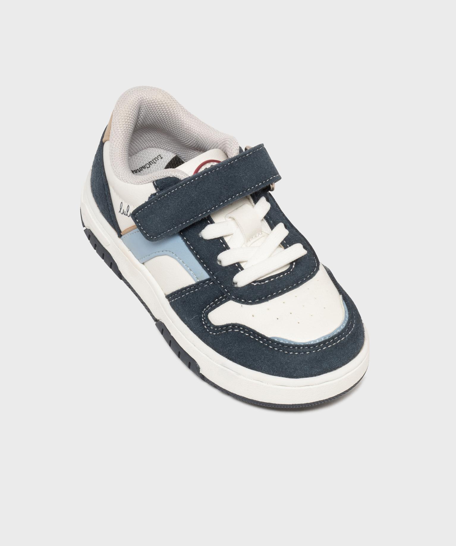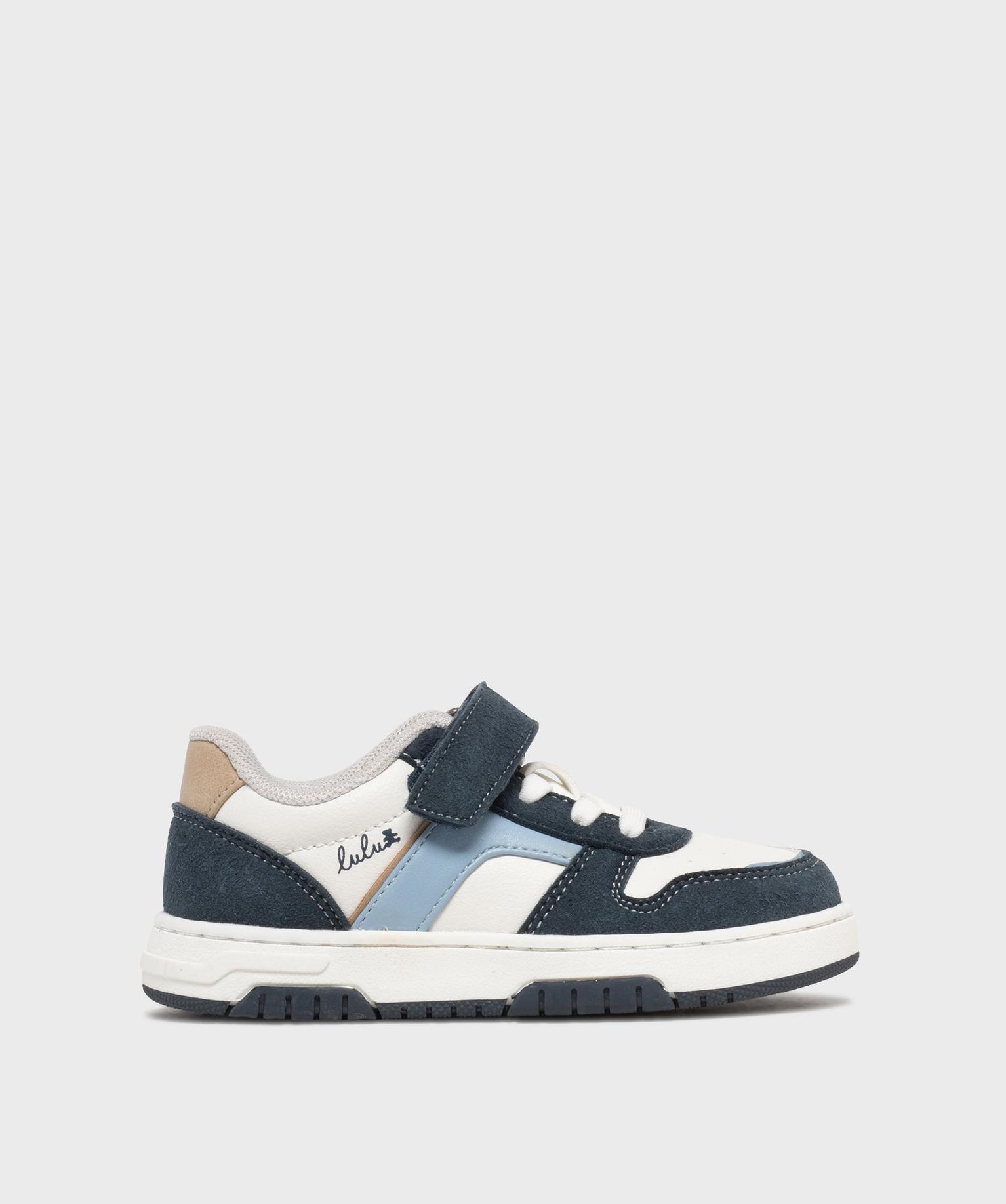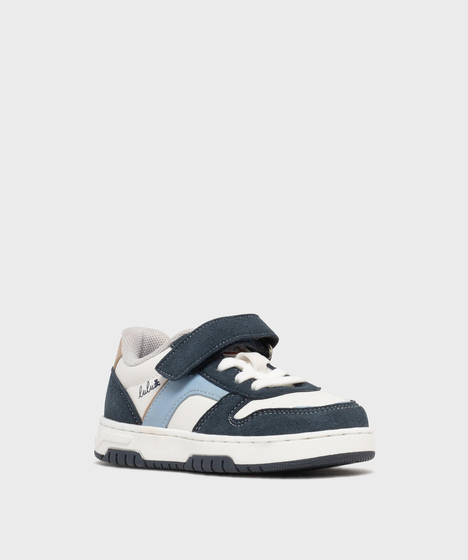 Baskets tricolores à scratch garçon - LuluCastagnette bleu fonce