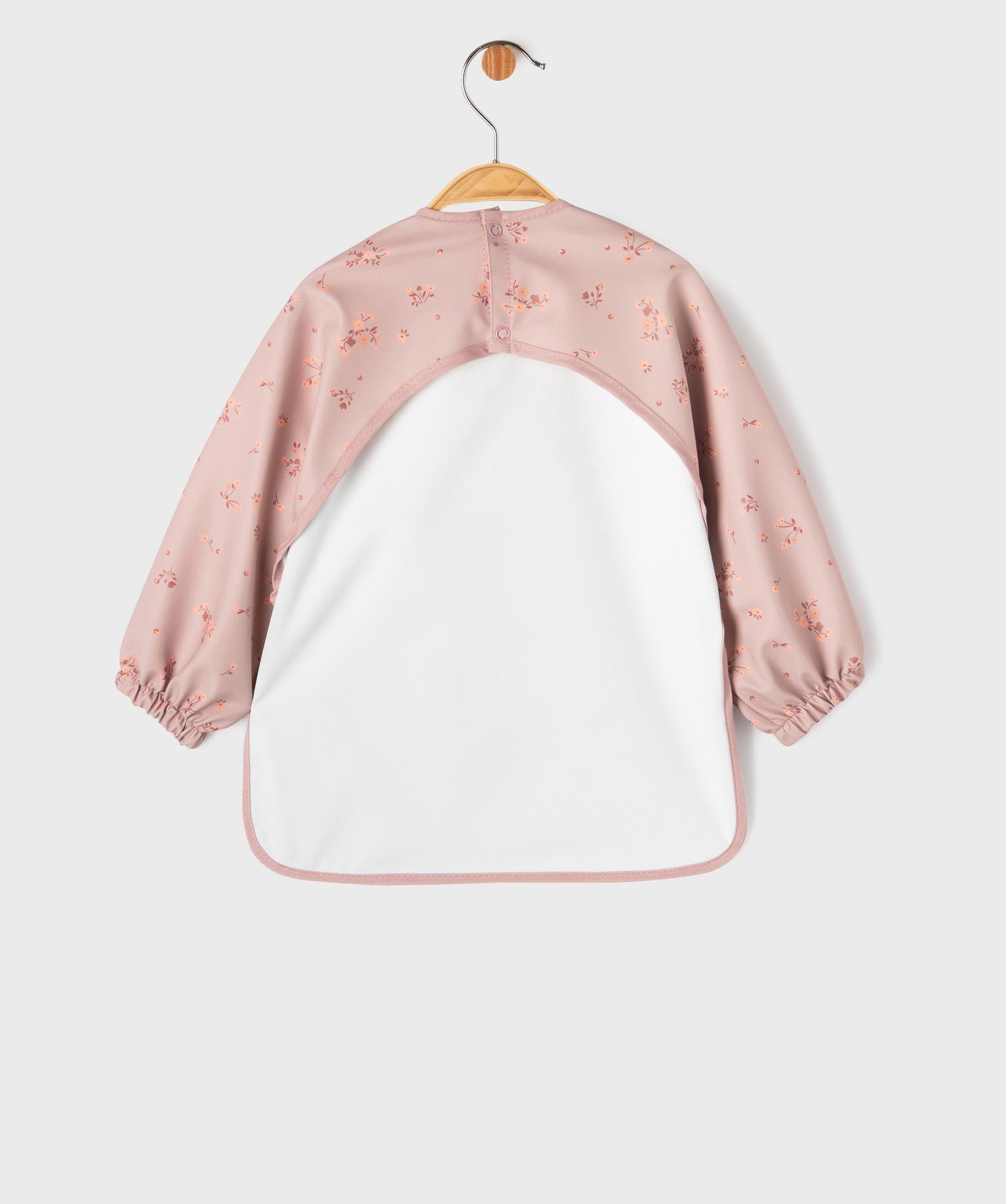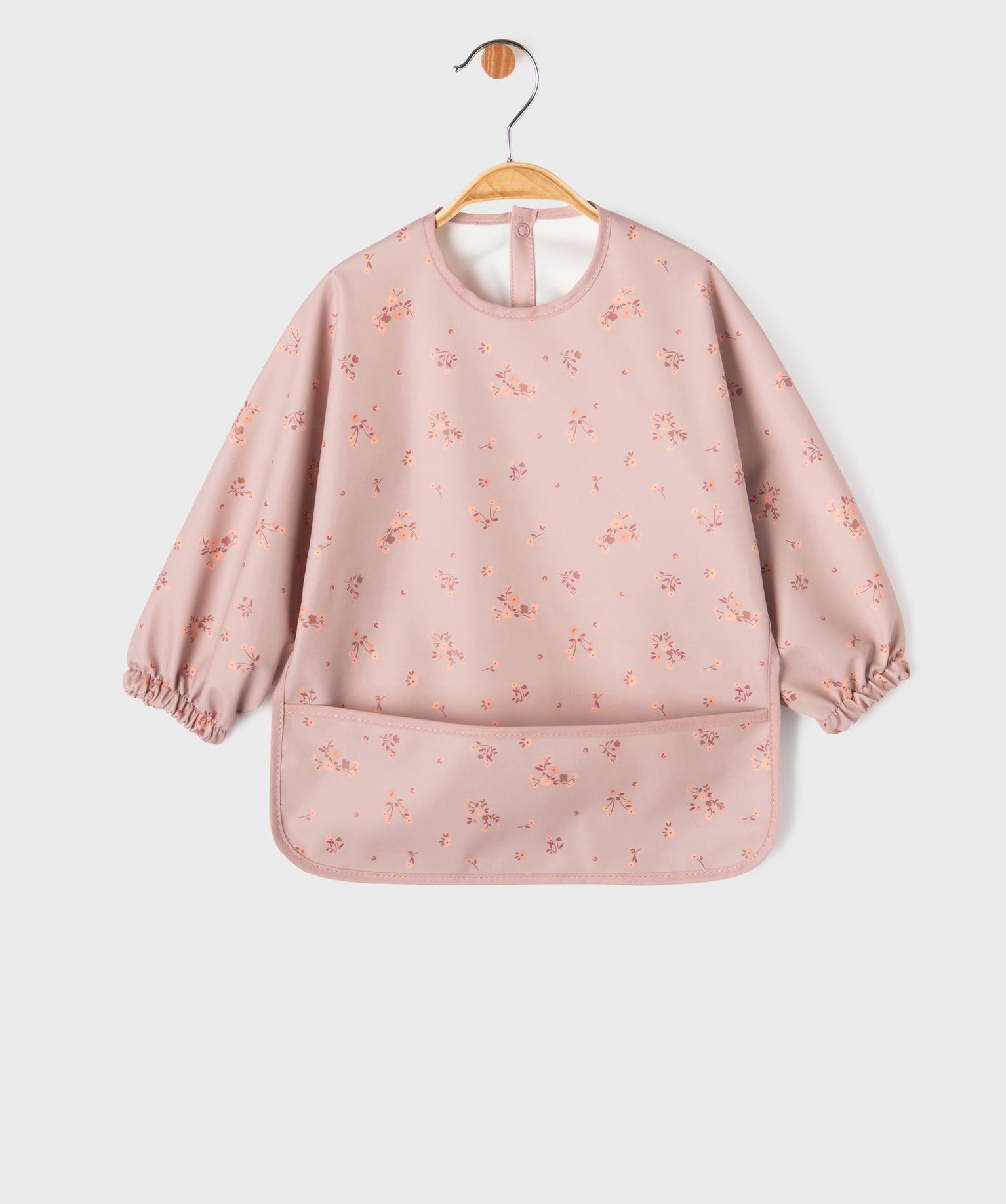 Bavoir tablier imperméable à motifs fleuris bébé fille vieux rose