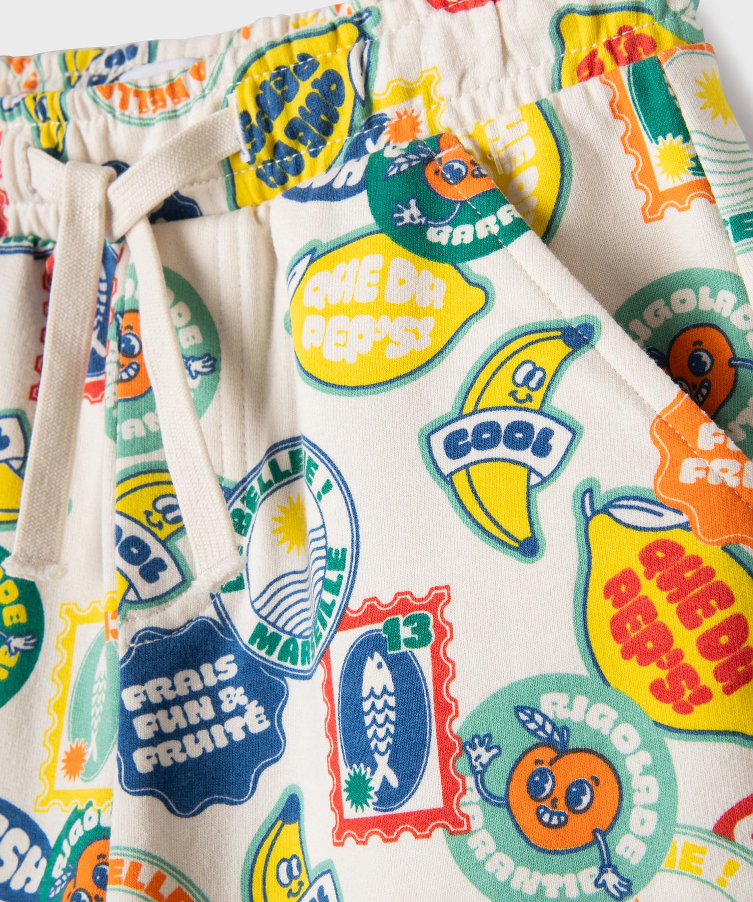 Impossible de passer à côté de ce bermuda garçon au charme joyeusement rétro ! Confectionné en French Terry souple et doux, le bermuda il séduit par son imprimé all over fantaisie aux accents estivaux. Top pour donner de la personnalité à un bermuda en jean ! Sa taille entièrement élastiquée, complétée par un cordon coulissant, assure un ajustement facile et confortable. 2 poches italiennes devant.