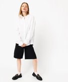 Cette version ample du bermuda assure une allure élégante en toutes circonstances. Inspiré d’un classique, ce bermuda pour femme se distingue par ses pinces sur l’avant. Grâce à sa coupe ample, il peut presque passer pour une jupe culotte ! Doté d’une ceinture élastique au dos, il s’enfile facilement. Ce bermuda à pinces se porte avec une chemise et une paire de bottes le jour et avec une veste de tailleur le soir.