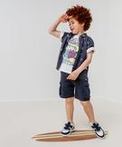 Le bermuda en maille French Terry fait partie des indispensables du vestiaire des enfants, offrant confort et allure décontractée. Ce bermuda garçon se distingue par sa coupe ample agrémentée de larges poches à rabat. Il possède également deux poches italiennes et une fausse poche raglan au dos. Ce short cargo possède une taille élastique ajustable par cordon coulissant pour s’adapter à toutes les silhouettes. Il se porte avec un tee-shirt et une paire de sandales.