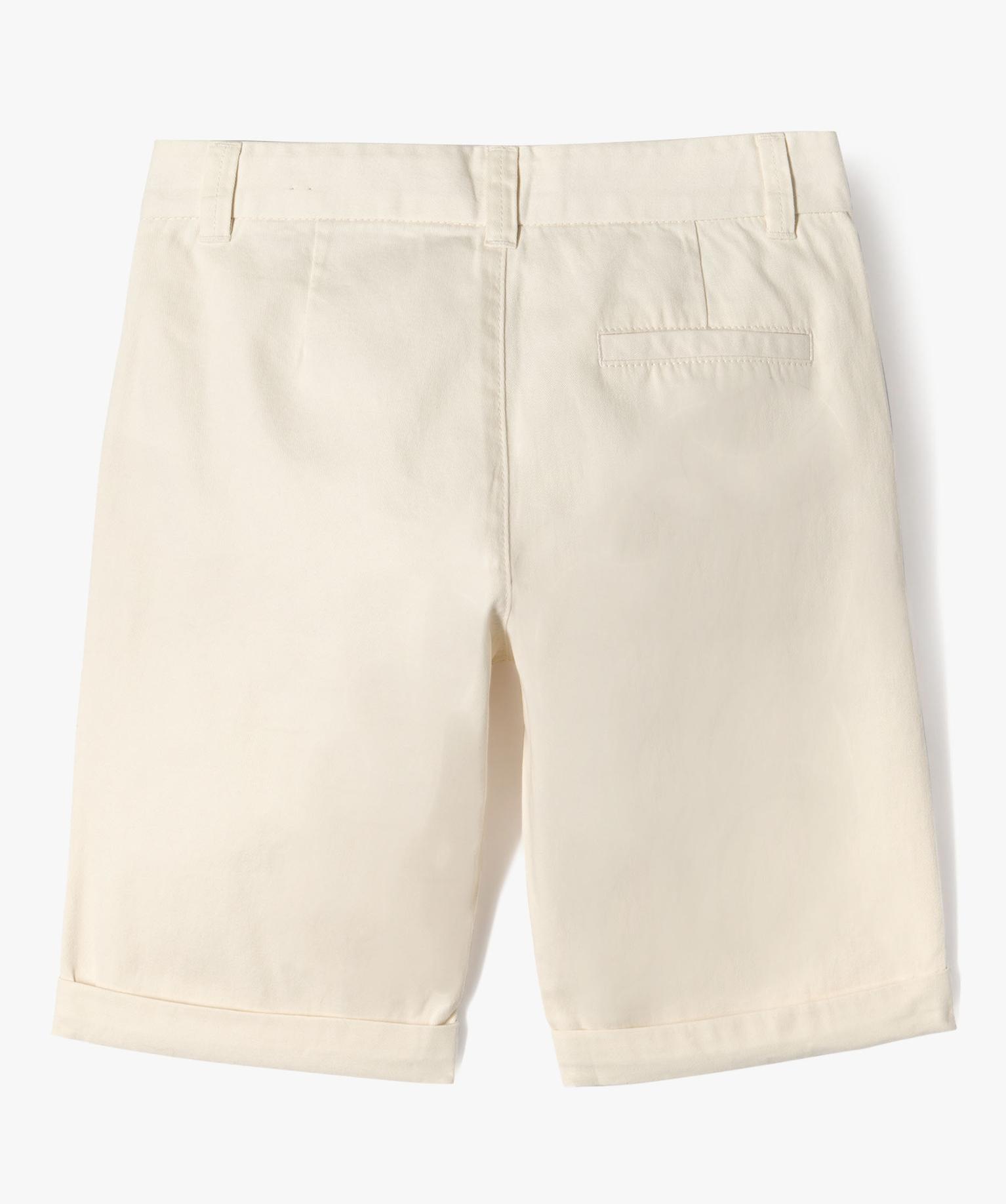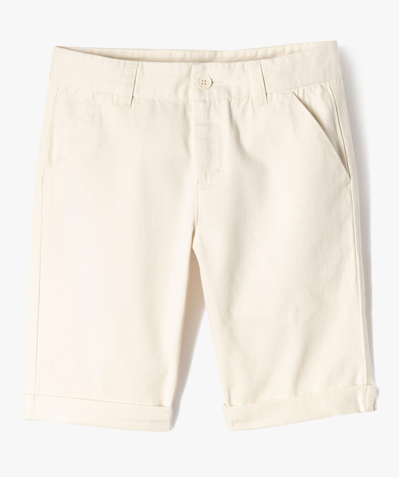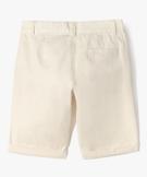 Quintessence de l'élégance en version estivale : le chino se décline ici en bermuda très chic. Les ados auront plaisir à le coordonner avec un tee-shirt à motif, un polo en maille piquée ou encore une chemise ! Le bermuda garçon affiche des finitions propres au chino : fermeture zip + bouton, belle toile légère 100% coton, poches italiennes avec couture d'arrêt devant et une fausse poche raglan au dos. Ce bermuda chino présente également un revers cousu dans le bas et une taille réglable par élastique intérieur pour s'adapter à la morphologie de votre ado.