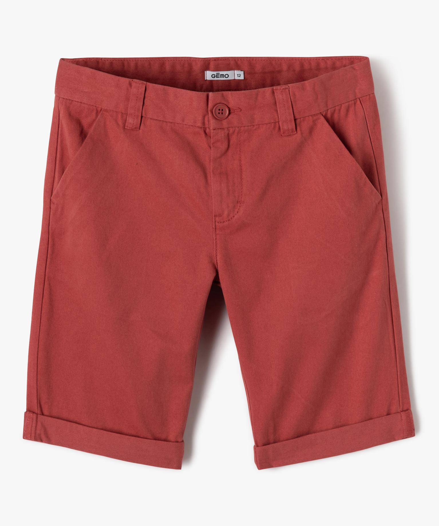 Bermuda coupe chino regular en toile de coton garçon rouge vif