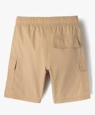 Pour une allure loose au top de la décontraction, offrez à votre enfant ce bermuda ample avec ceinture élastique ajustable par cordon élastique. Ce bermuda garçon séduit par sa coupe inspirée du pantalon cargo avec de larges poches à rabat sur les cuisses, des poches italiennes et une fausse poche à rabat au dos. Confectionné dans une toile de coton légère, il fait partie des pièces incontournable de la saison estivale. Ce bermuda cargo se porte avec un débardeur, un tee-shirt ou un polo, tout lui va ! Cordon élastique avec stop cordon.