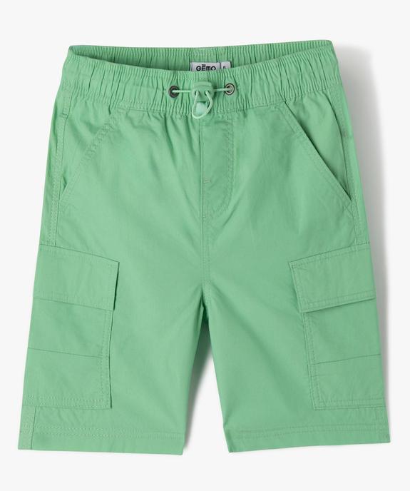 Pour une allure loose au top de la décontraction, offrez à votre enfant ce bermuda ample avec ceinture élastique ajustable par cordon élastique. Ce bermuda garçon séduit par sa coupe inspirée du pantalon cargo avec de larges poches à rabat sur les cuisses, des poches italiennes et une fausse poche à rabat au dos. Confectionné dans une toile de coton légère, il fait partie des pièces incontournable de la saison estivale. Ce bermuda cargo se porte avec un débardeur, un tee-shirt ou un polo, tout lui va ! Cordon élastique avec stop cordon.