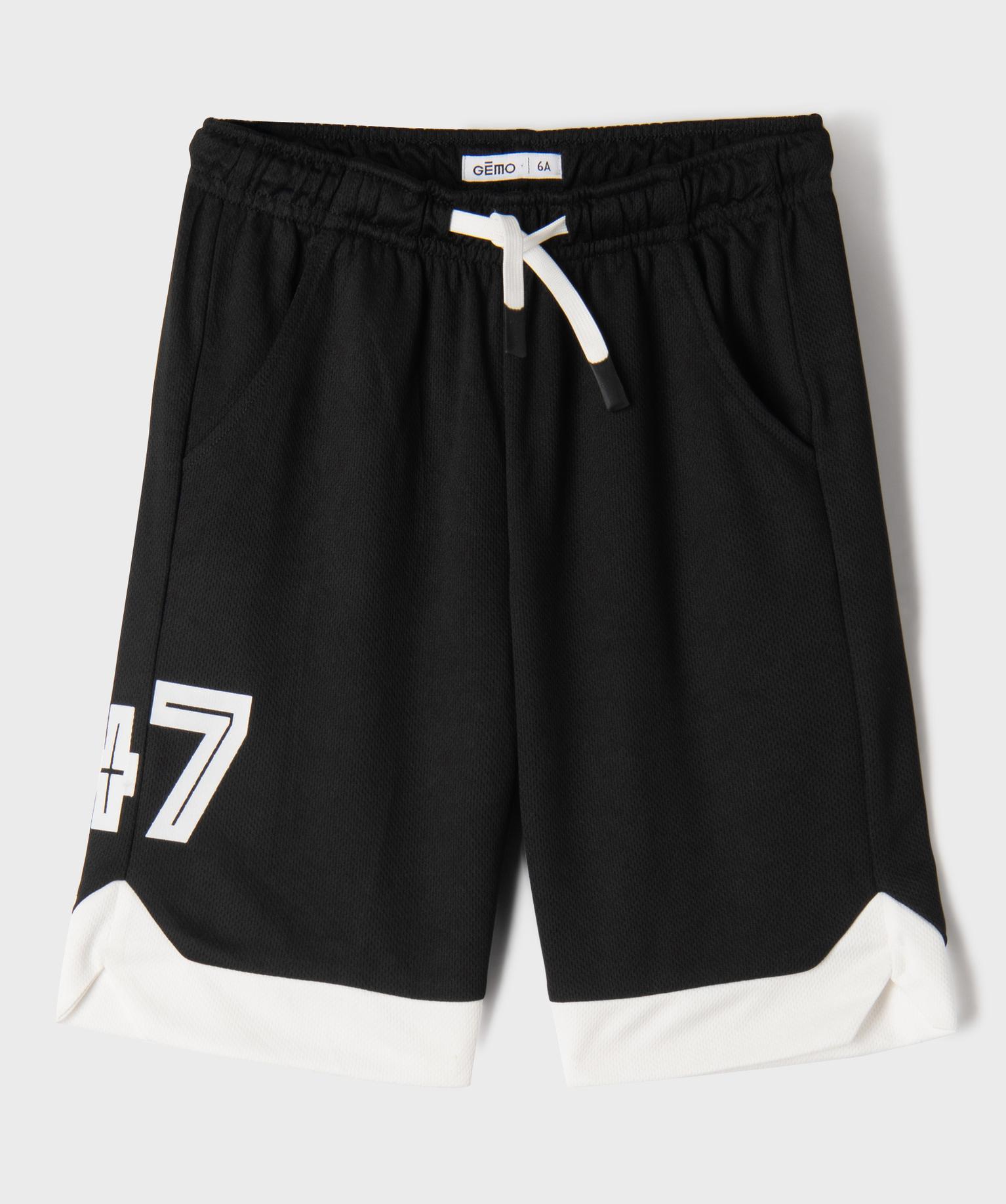 Misez sur ce short de sport parfait pour les activités dynamiques de votre enfant. Réalisé en mesh léger et respirant, le bermuda pour garçon assure fraîcheur et aisance. Sa taille élastiquée avec cordon coulissant garantit un ajustement confortable. Il est équipé de 2 poches latérales pour la praticité. Inspiré des shorts de basket, le bermuda se distingue par un chiffre sur la cuisse, un empiècement contrastant et une petite fente en bas de jambe. À porter avec un débardeur technique ou un tee-shirt sport pour un look athlétique réussi.