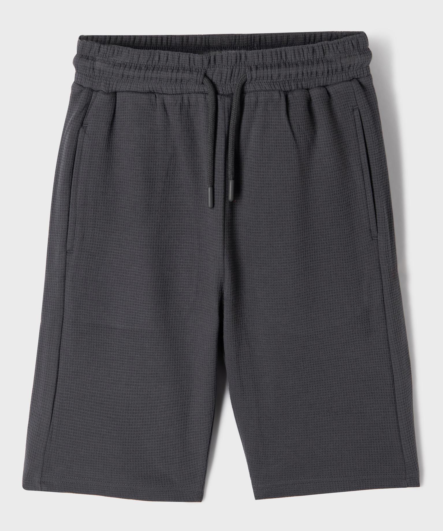 Bermuda de sport uni en maille nid d’abeille garçon gris fonce