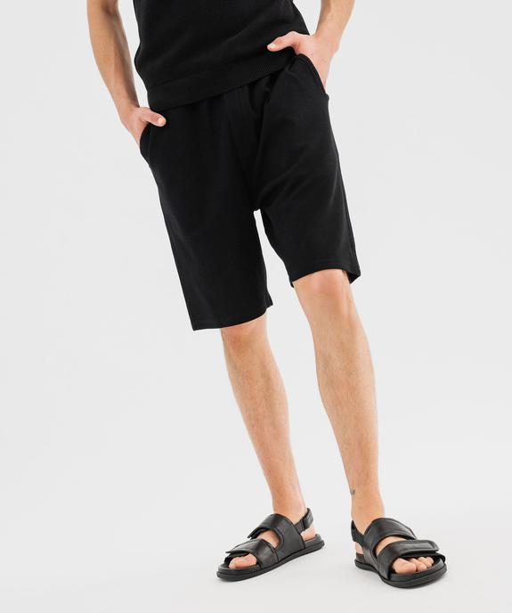 Bermuda en coton nid d'abeille à taille élastiquée homme noir