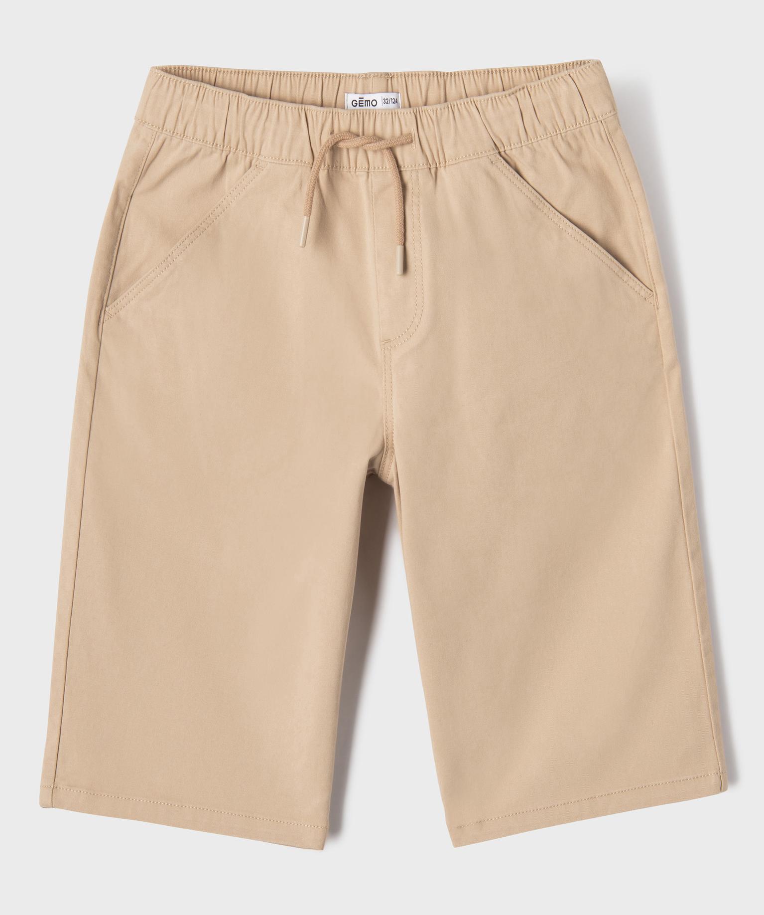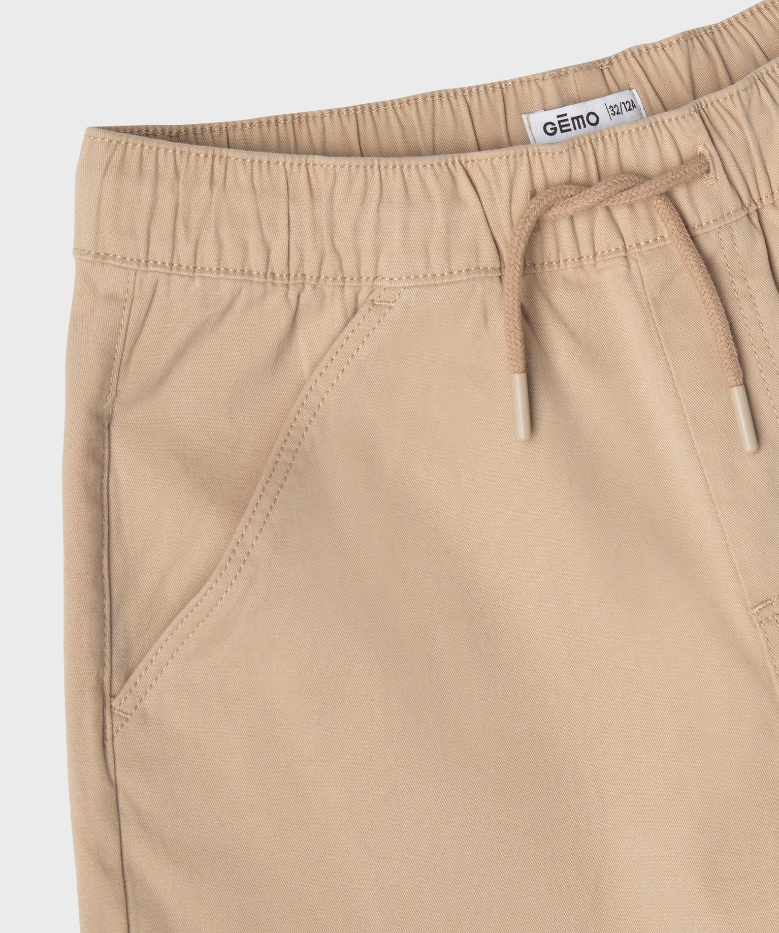 Bermuda en coton stretch coupe loose avec taille élastique garçon beige fonce
