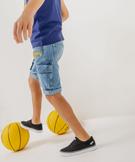 Bermuda en jean à poches cargo et motif garçon - Camps United bleu vif