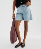 Bermuda en jean ample taille haute femme bleu vif