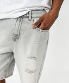 Bermuda en jean aspect usé coupe ample homme gris clair