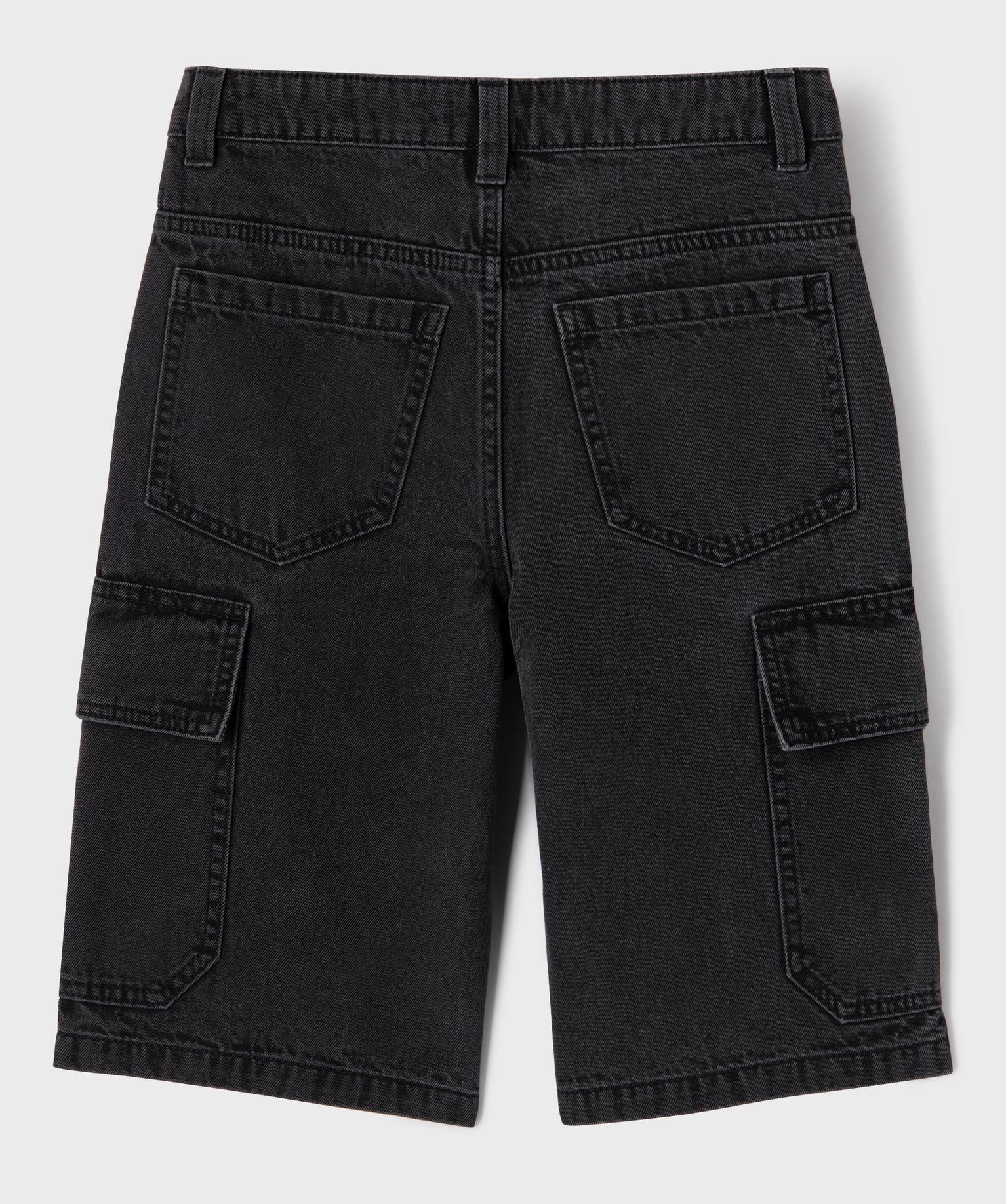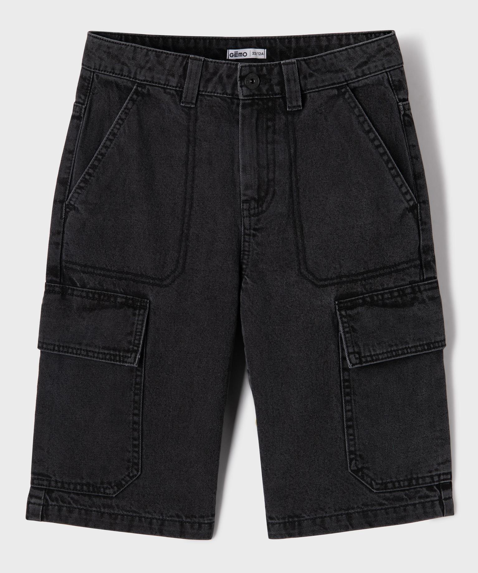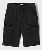 Bermuda en jean coupe Cargo Regular avec ceinture ajustable garçon noir