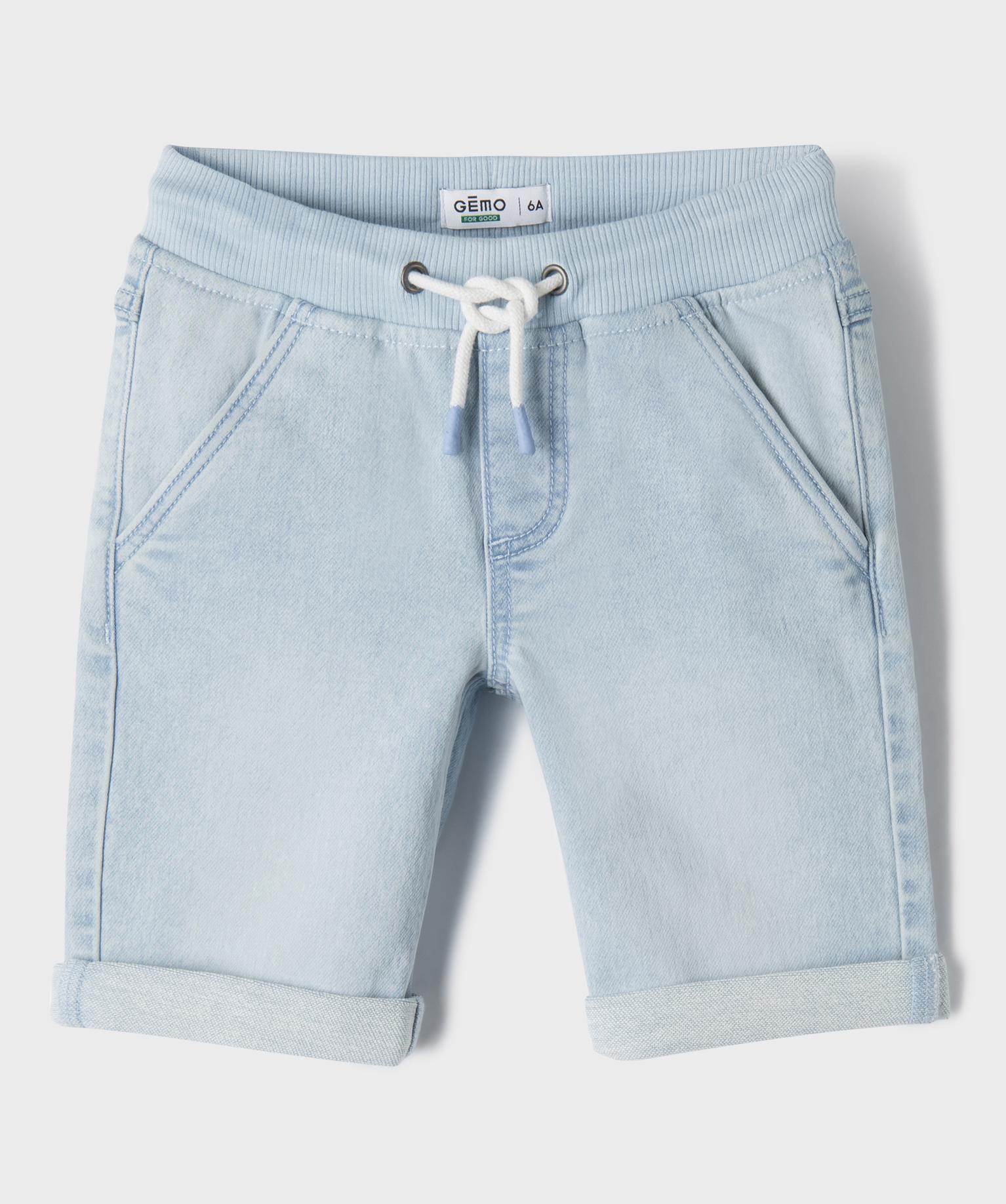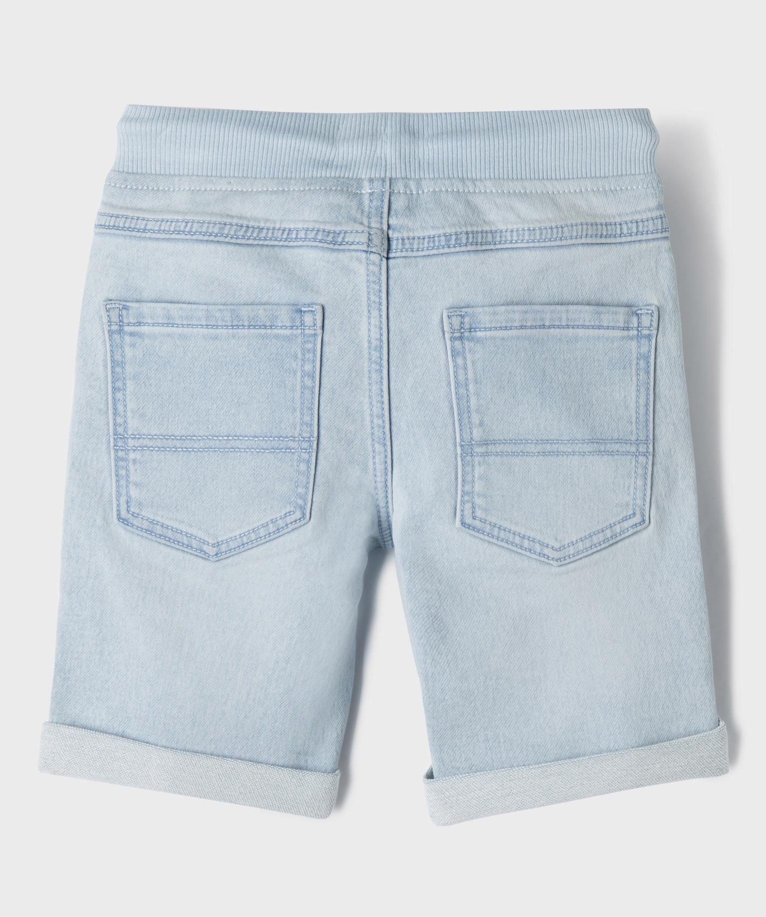 Bermuda en jean extensible délavé avec taille en bord-côte garçon bleu clair