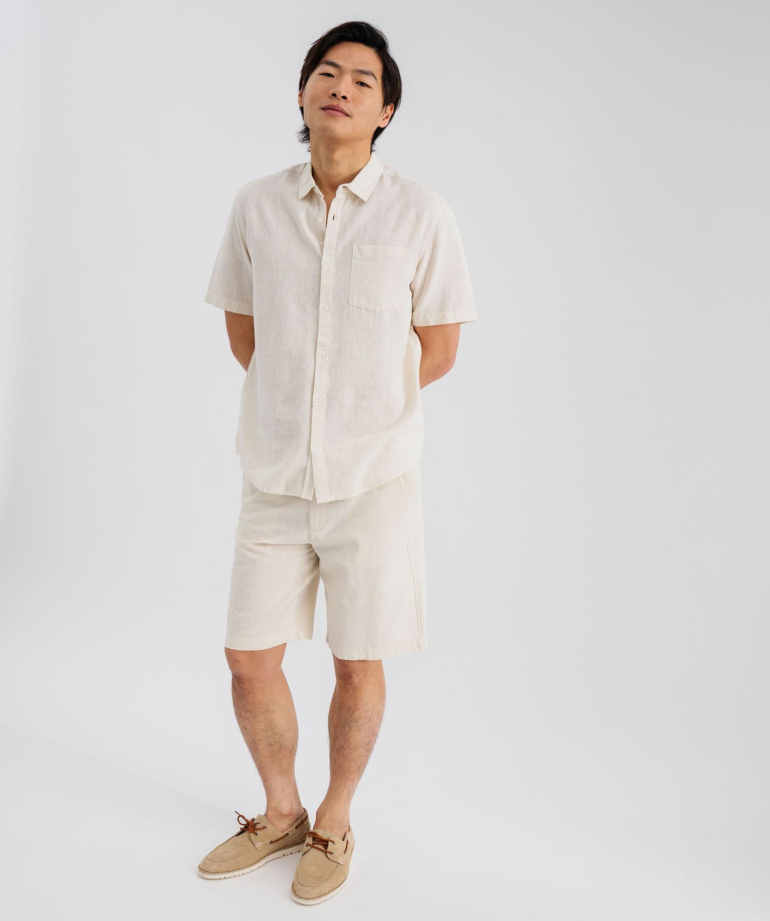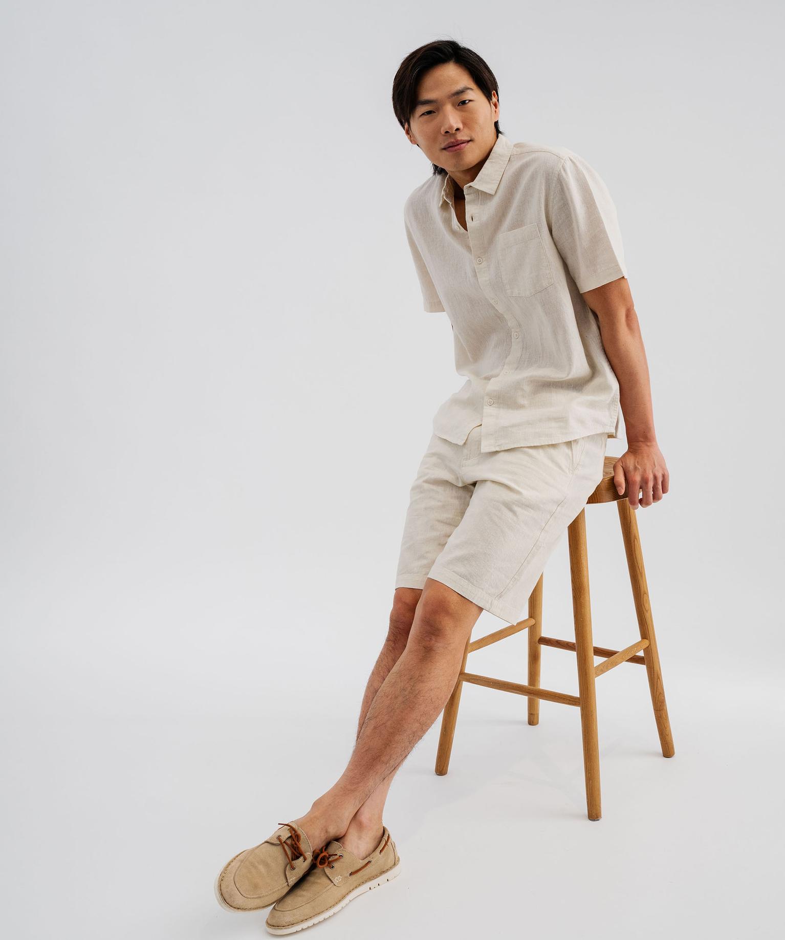 Bermuda en lin et coton coupe regular homme beige