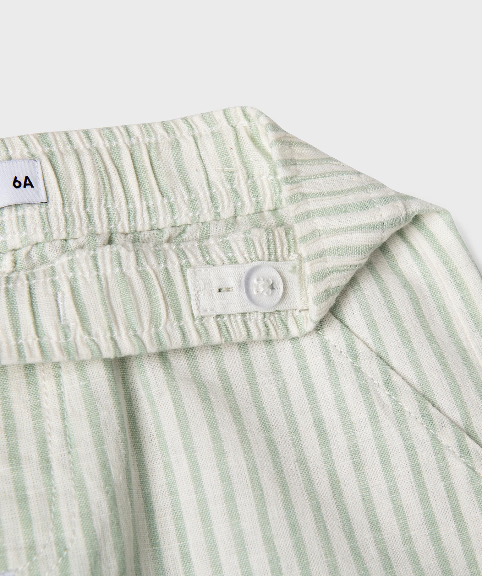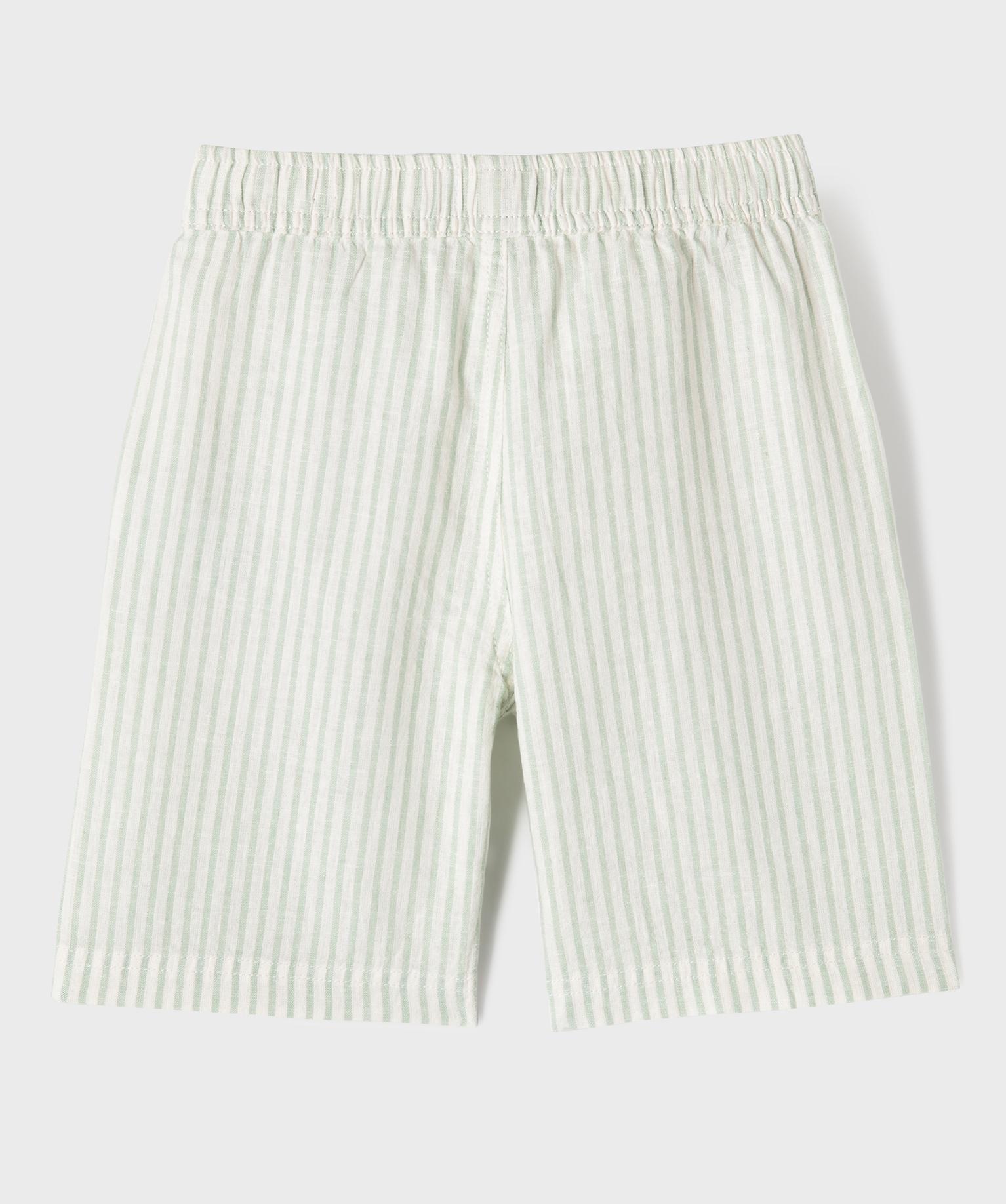 Craquez pour le chic intemporel et la fraicheur de ce bermuda en lin rayé ! Un bermuda garçon confectionné dans un mélange coton-lin hyper confortable pour les beaux jours. Pratique, le bermuda s'enfile et s'ajuste facilement grâce à sa taille élastiquée et dotée d'un discret système de réglage intérieur. 2 cordons à nouer devant apportent une touche de fantaisie. La coupe est large, pour plus de confort. 2 poches italiennes.