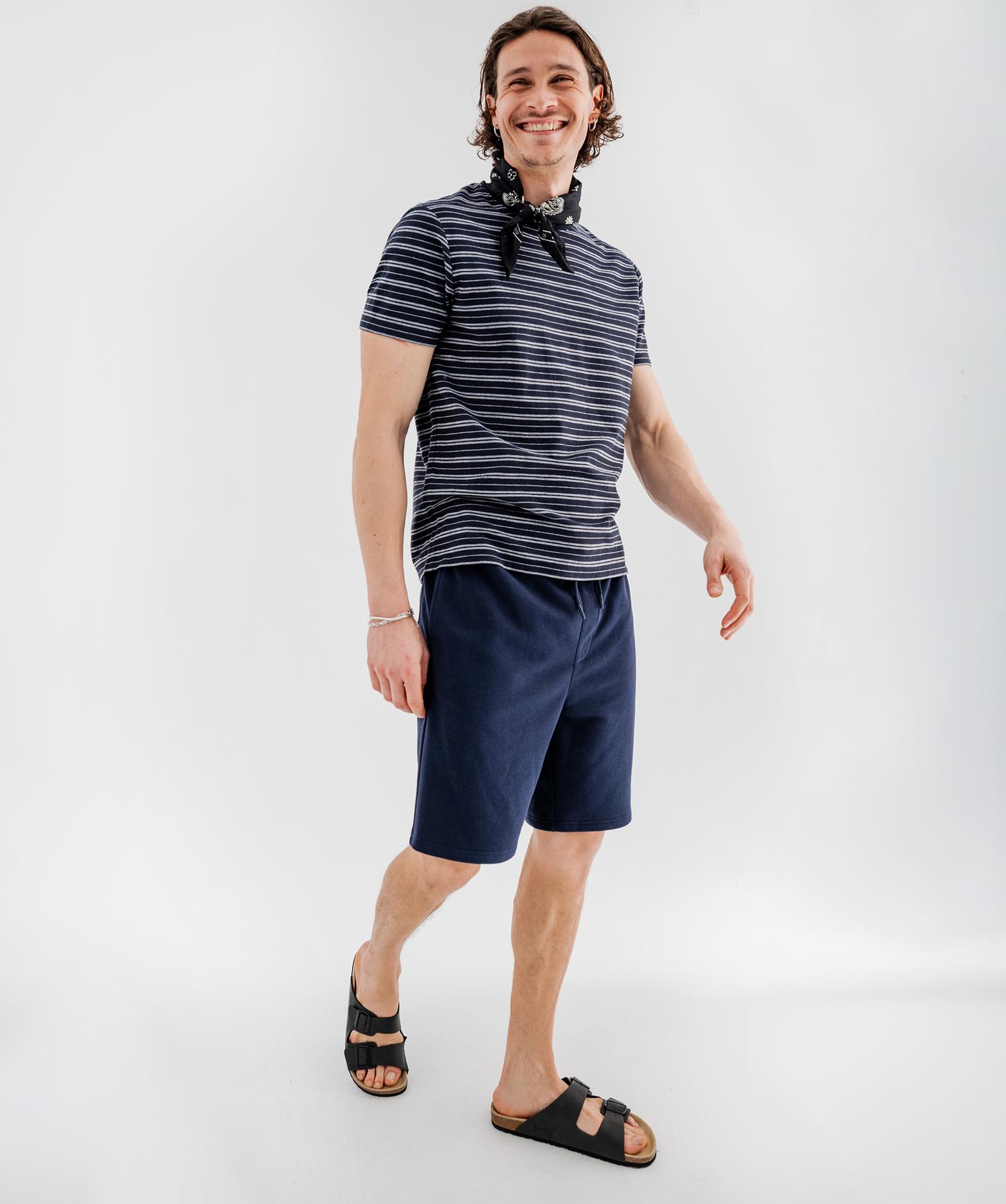 Bermuda en maille French Terry avec taille ajustable homme marine