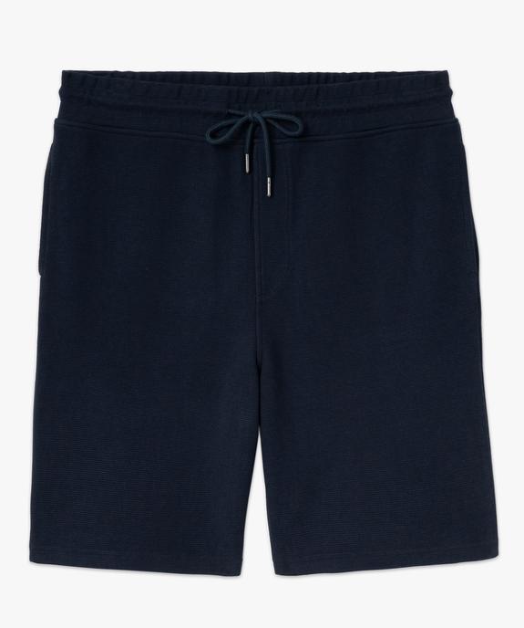 Redécouvrez le bermuda en maille dans sa version élégante ! On aime la maille piquée délicatement texturée, le coloris intemporel, le confort de la taille élastiquée ajustable par cordon et les finitions soignées de ce bermuda pour homme ! Le modèle dissimule 2 poches dans les coutures latérales et présente 1 poche plaquée au dos. L'avant est soigné par une fausse braguette. Le cordon d'ajustage se termine par des embouts en métal. Un bermuda homme parfaitement adapté pour des looks casual chic.