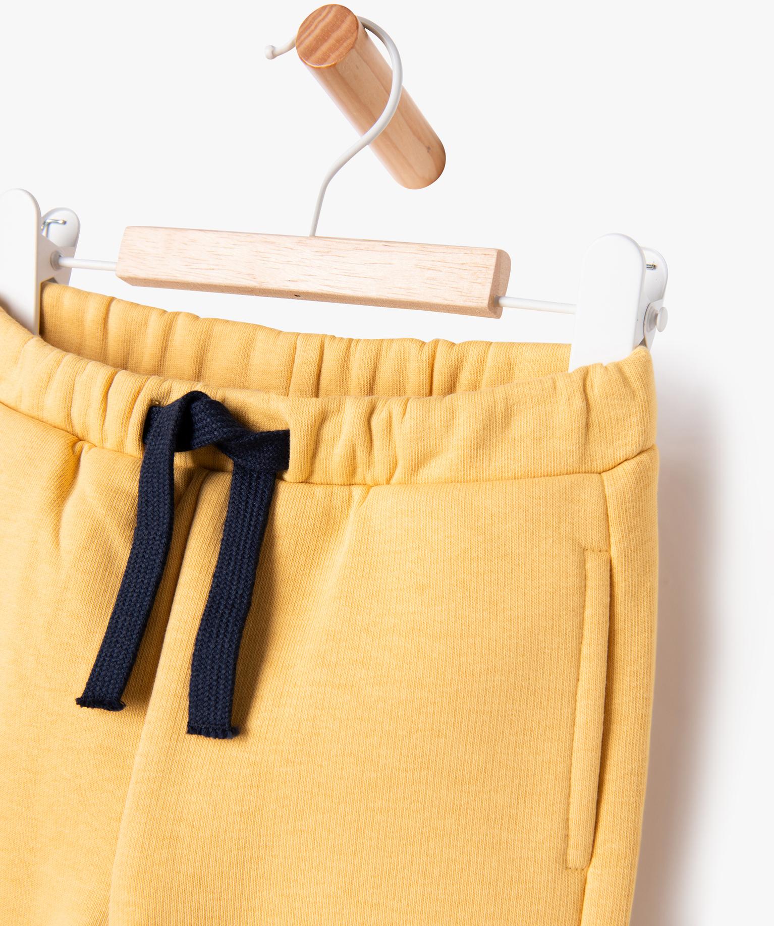 L'indispensable des beaux jours, la pièce essentielle qui se marie avec tous les hauts : le bermuda en molleton ! Un bermuda en maille bouclette, souple léger, avec une taille élastiquée ajustable par cordon pour un confort maximum. Sobre, le bermuda bébé garçon affiche de jolis détails : revers cousus en bas de jambe, cordon contrastant et poches discrètes sur les côtés. Il se décline dans le jolies couleurs vibrantes qui dynamisent tous les looks de l'été. Pour un ensemble coordonné, associez ce bermuda au sweat à manches courtes assorti !